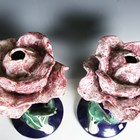 A pair of modern majolica pottery vases of flower form, height 36cm, a similar vase in the form of a bunch of flowers and another ornamental pottery urn.