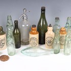 A Fryco Aerated Waters stoneware dispenser, height 47cm, a King & Barnes Ltd stoneware dispenser and a selection of other stoneware and glass bottles of mainly Horsham interest.
