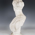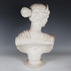 A late 20th century cast composite stone bust of a classical maiden, height 48cm, together with a set of three cast composite display pedestals, height 58cm.