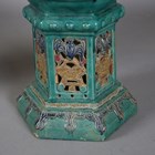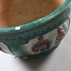 A pair of 20th century Chinese stoneware jardinières, moulded and glazed with figure vignettes, raised on pierced pedestals, height 62cm, diameter 46cm.