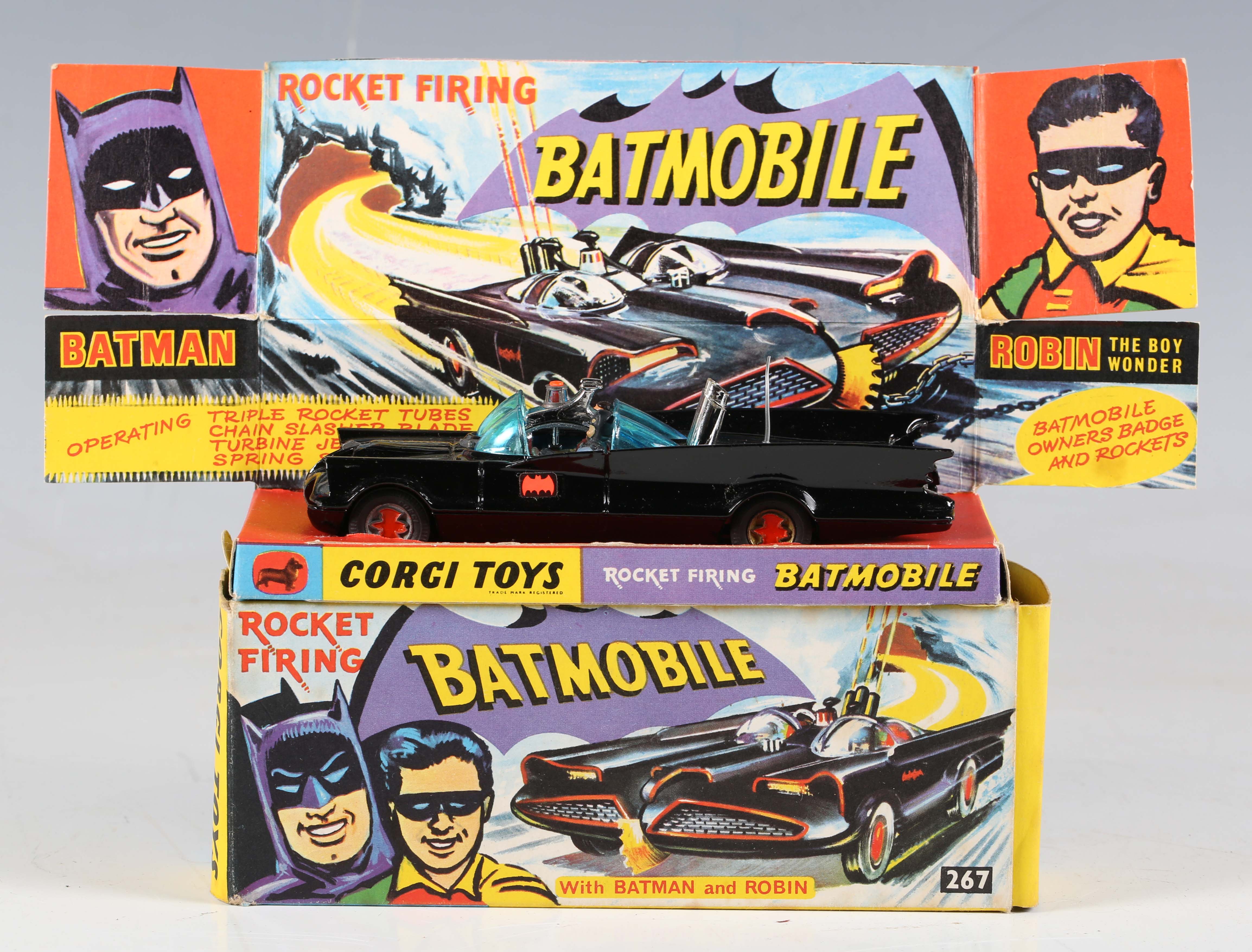A Corgi Toys No. 267 Batmobile, boxed with diorama, instructions, envelope and five rockets (box lightly scuffed and stained).