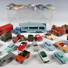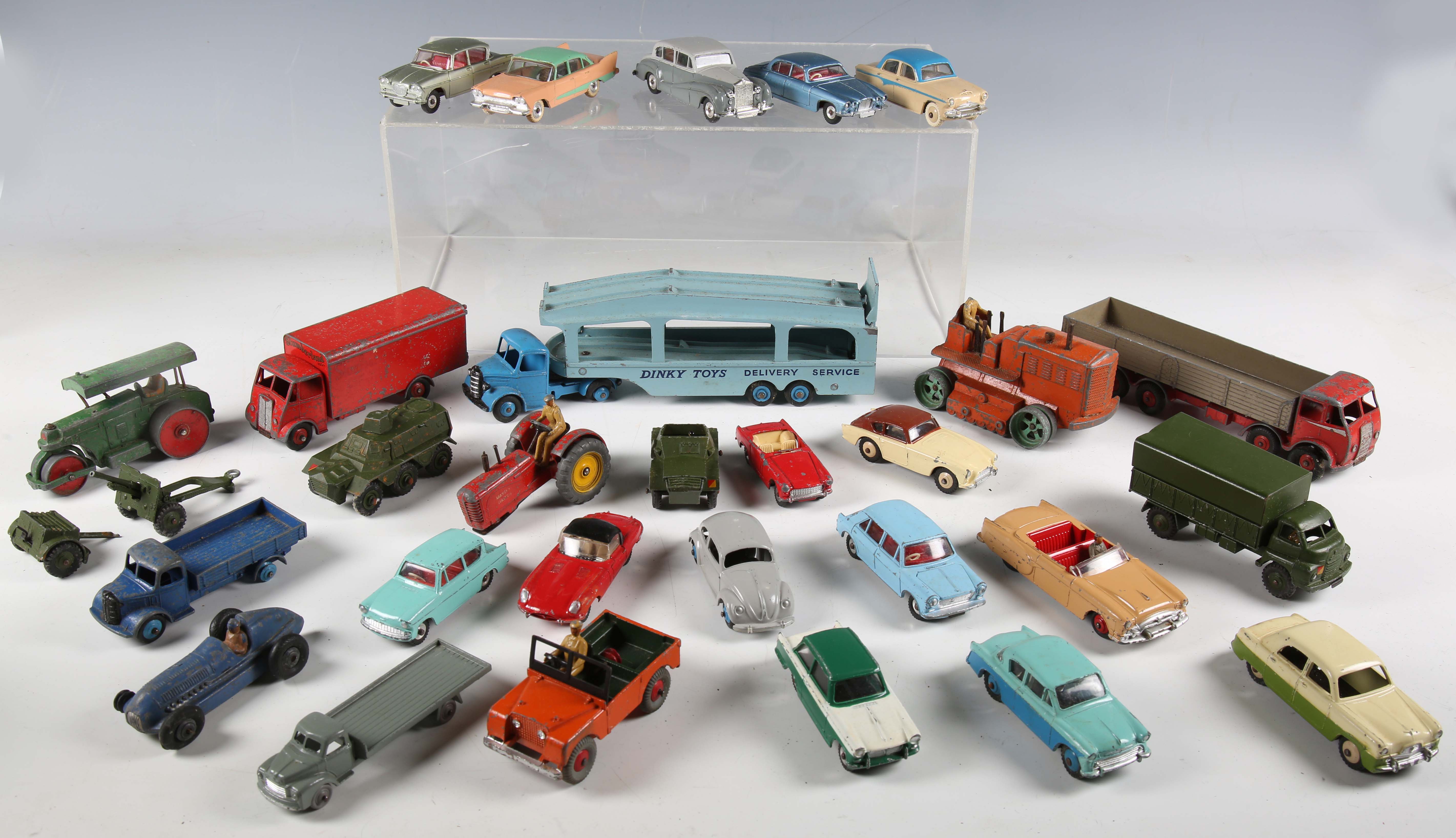 A group of Dinky Toys and Supertoys vehicles, including No. 514 Guy van ‘Slumberland’, No. 901 Foden eight wheel wagon, No. 166 Sunbeam Rapier in blue and turquoise, No. 167 AC Aceca Coupé in brown and cream, and No. 150 Rolls-Royce Silver Wraith, majority boxed (playwear, paint chips and damage, boxes creased, torn, scuffed, tape-repaired and lacking end flaps and tabs).