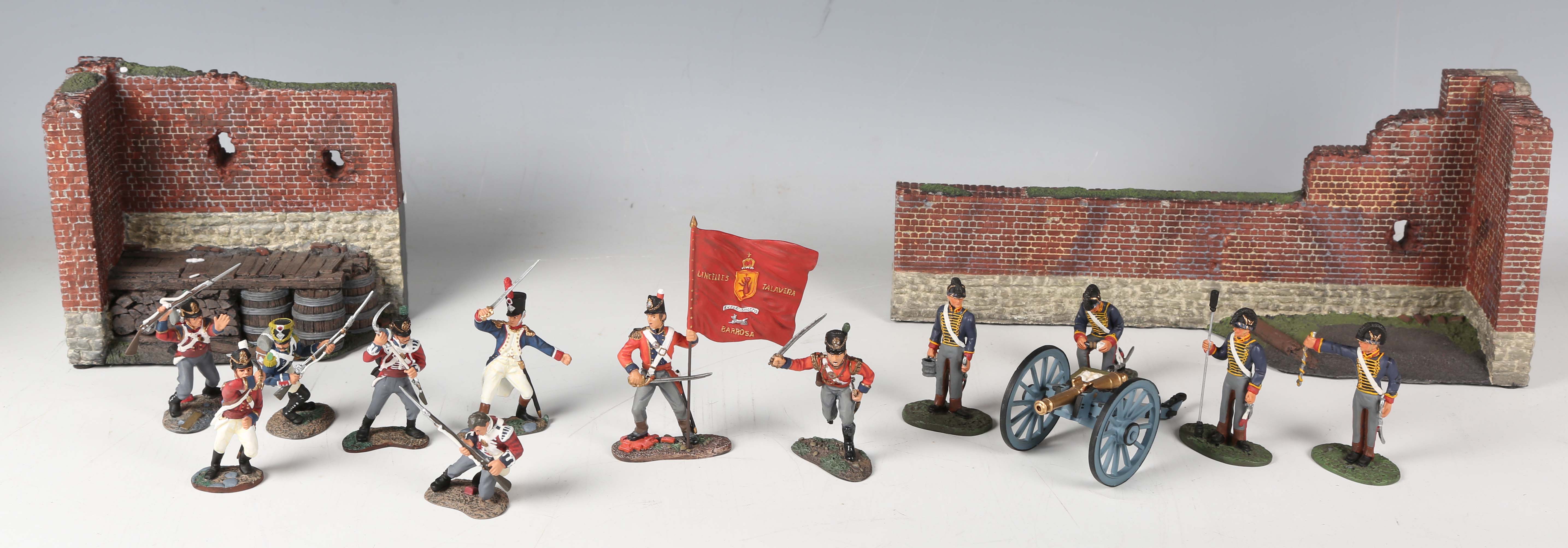 Three Britains Ertl Collectibles Napoleonic Wars Series diecast metal figure sets, comprising No. 00148N North Gate Diorama set (no book), No. 00290 Royal Artillery Unit with Cannon and No. 00149 British Coldstream Guards Command set, all boxed.