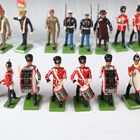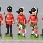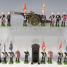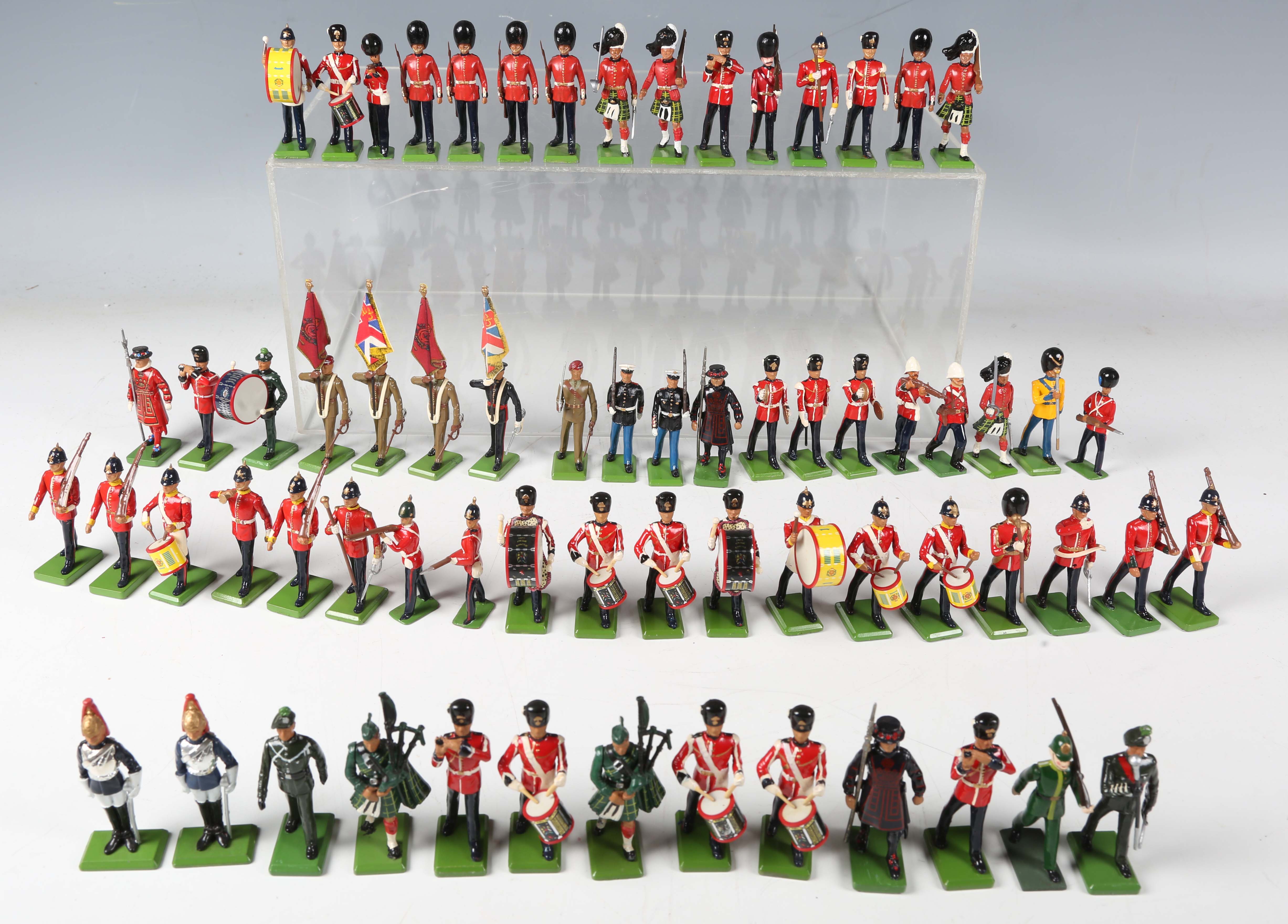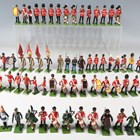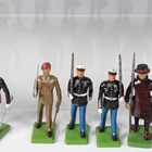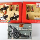 A good collection of Britains diecast metal figures and accessories, including No. 7301 US Marine Corps, No. 7203 Royal Marine Drum and Bugle, No. 7228 3 Mounted Lifeguards, bandsmen and No. 9740 18” Howitzer, boxed and loose.