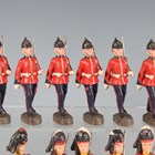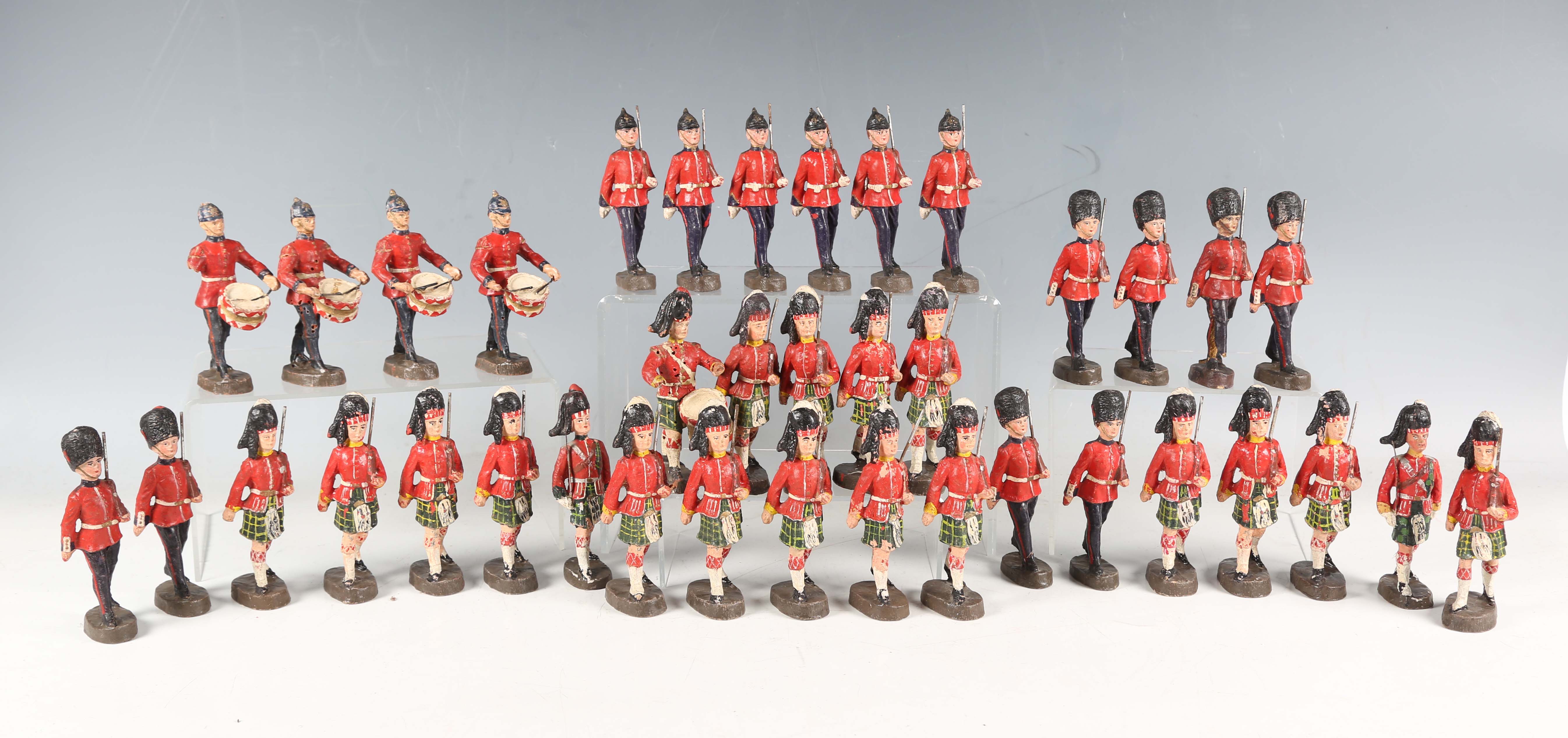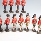 A group of Elastolin military figures, including Highlanders, bandsmen and British soldiers (playwear and faults).