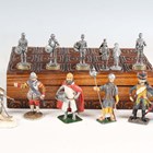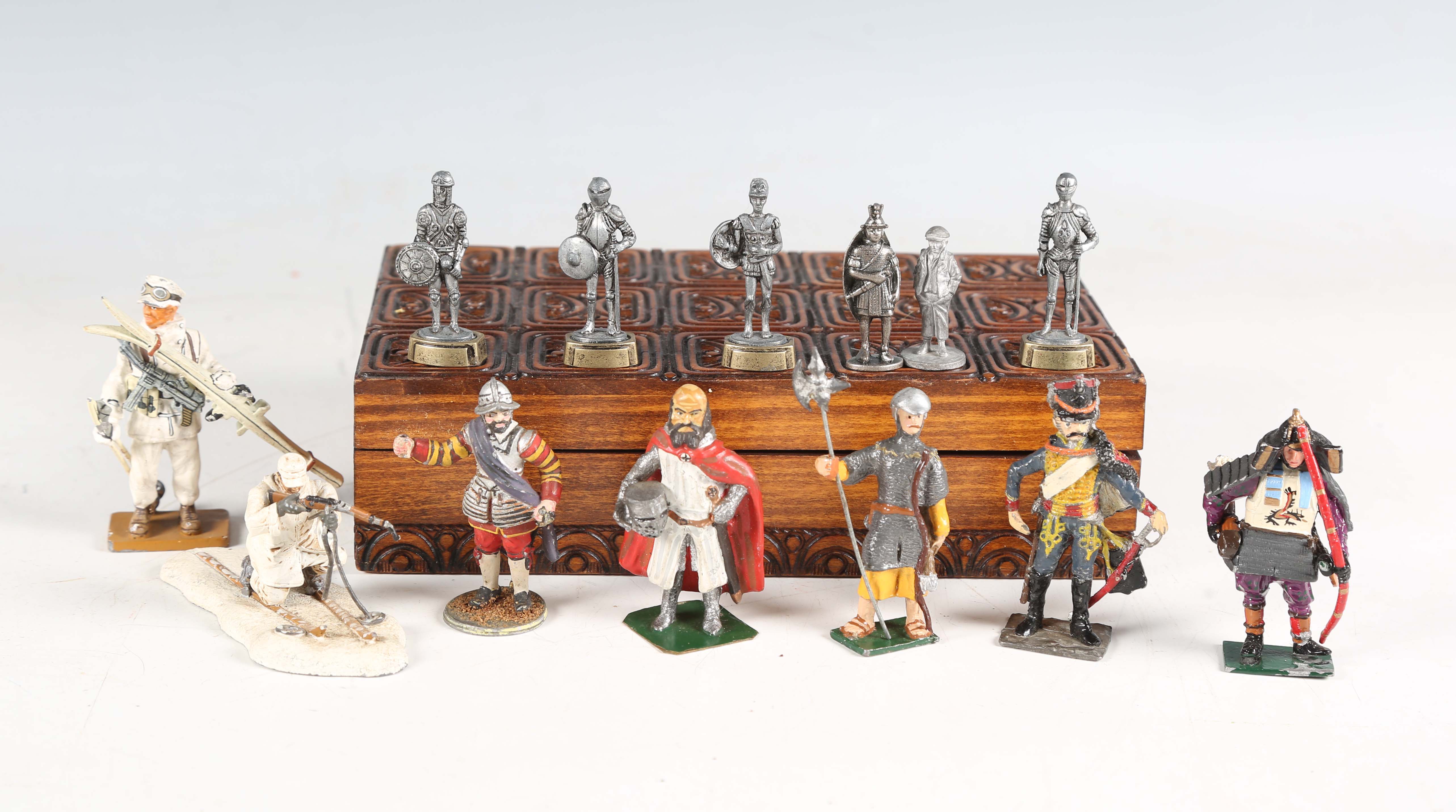 A collection of diecast lead and metal figures, including Britains farm animals, figures and accessories, a Ken Kearsley knight and a Les Higgins Spanish soldier (playwear and paint chips).