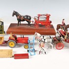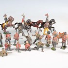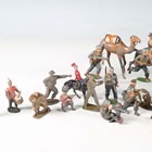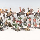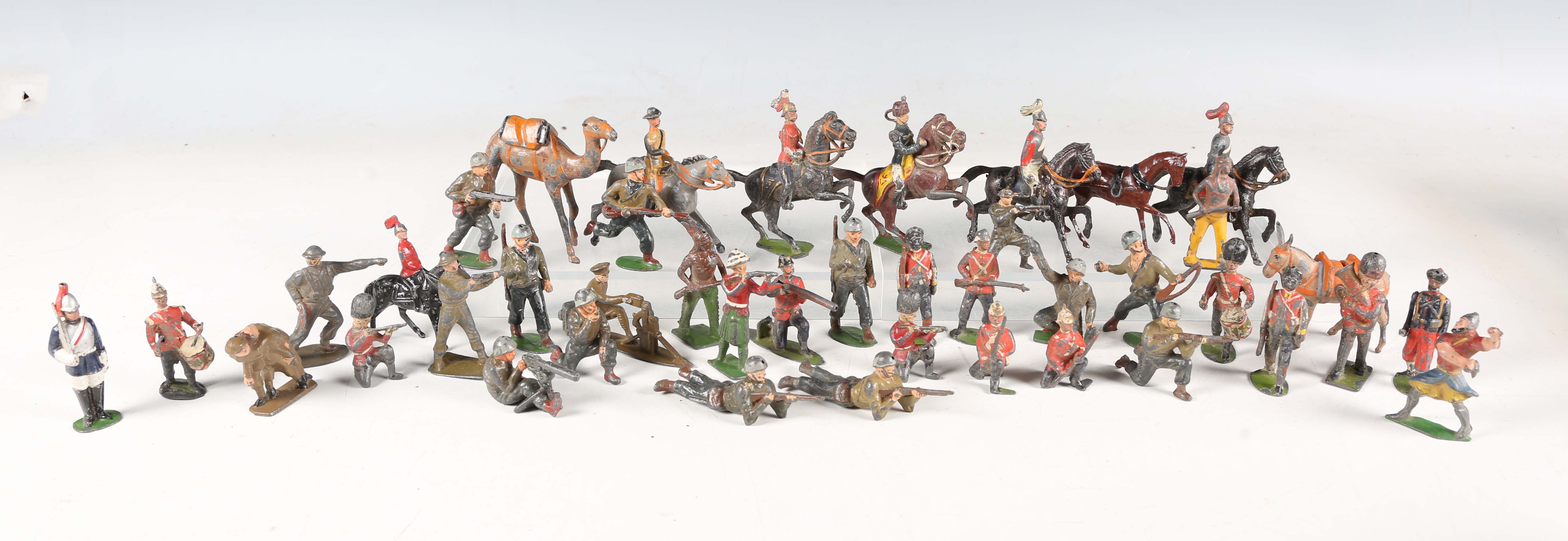 A collection of Britains and other diecast lead military and other figures and accessories, including Queen Elizabeth II on horseback, Second World War soldiers and state open landau, together with a Dinky toys road roller and an AA telephone box (playwear).