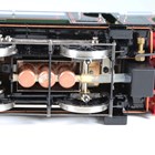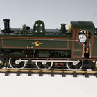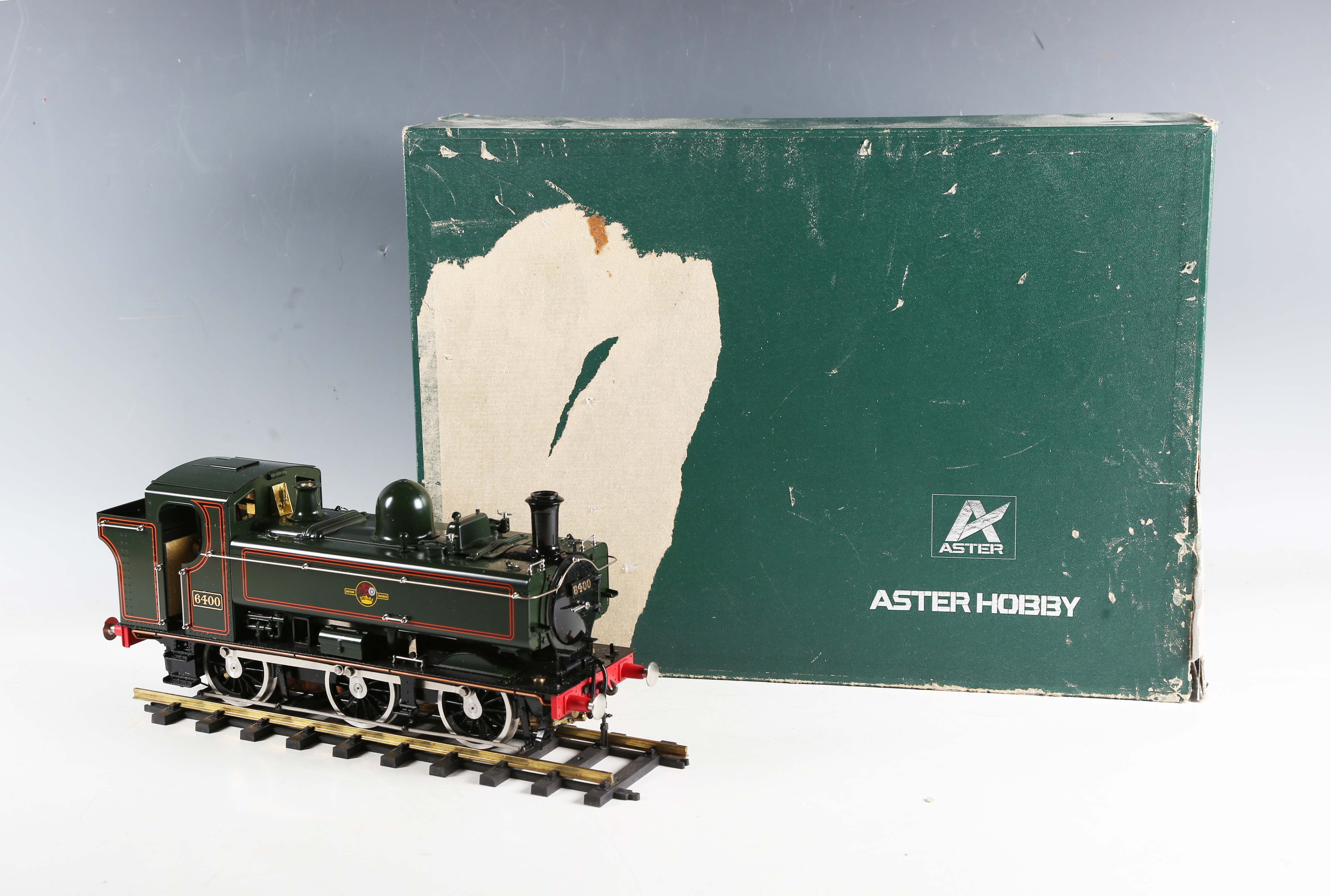 An Aster Hobby live steam gauge 1 0-6-0 pannier tank locomotive 6400, finished in British Railways green livery, the hinged cab roof revealing fittings, pressure gauge and water level sight glass, not fired, boxed with display track, assembly instructions, tools and handling gloves (box lid torn and scuffed).