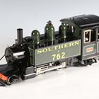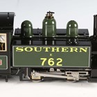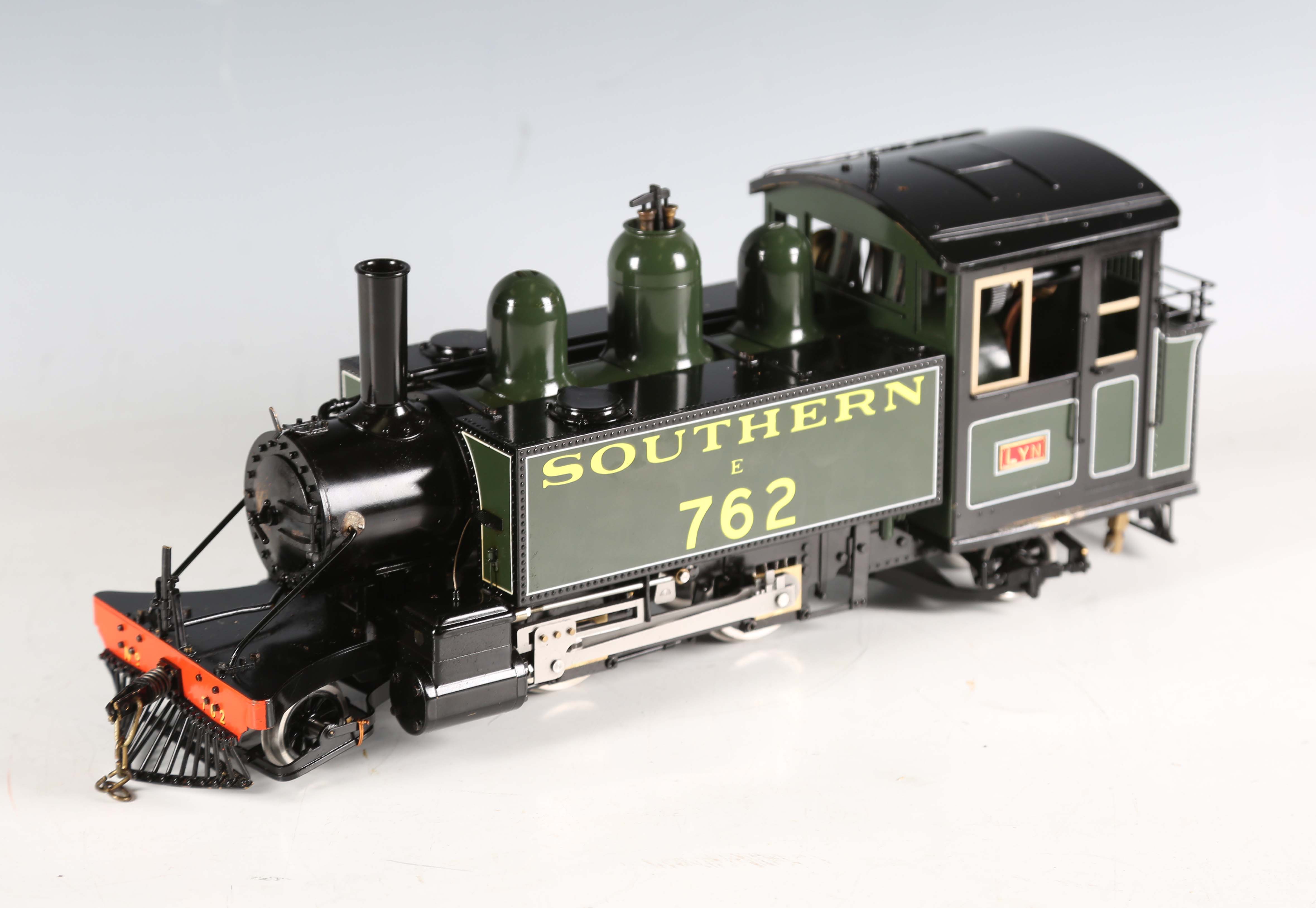 An Accucraft gas-fired live steam 2-4-2 saddle tank locomotive 762 'Lyn' in Southern green and black, with two out-of-date boiler pressure certificates and hand-written notes.