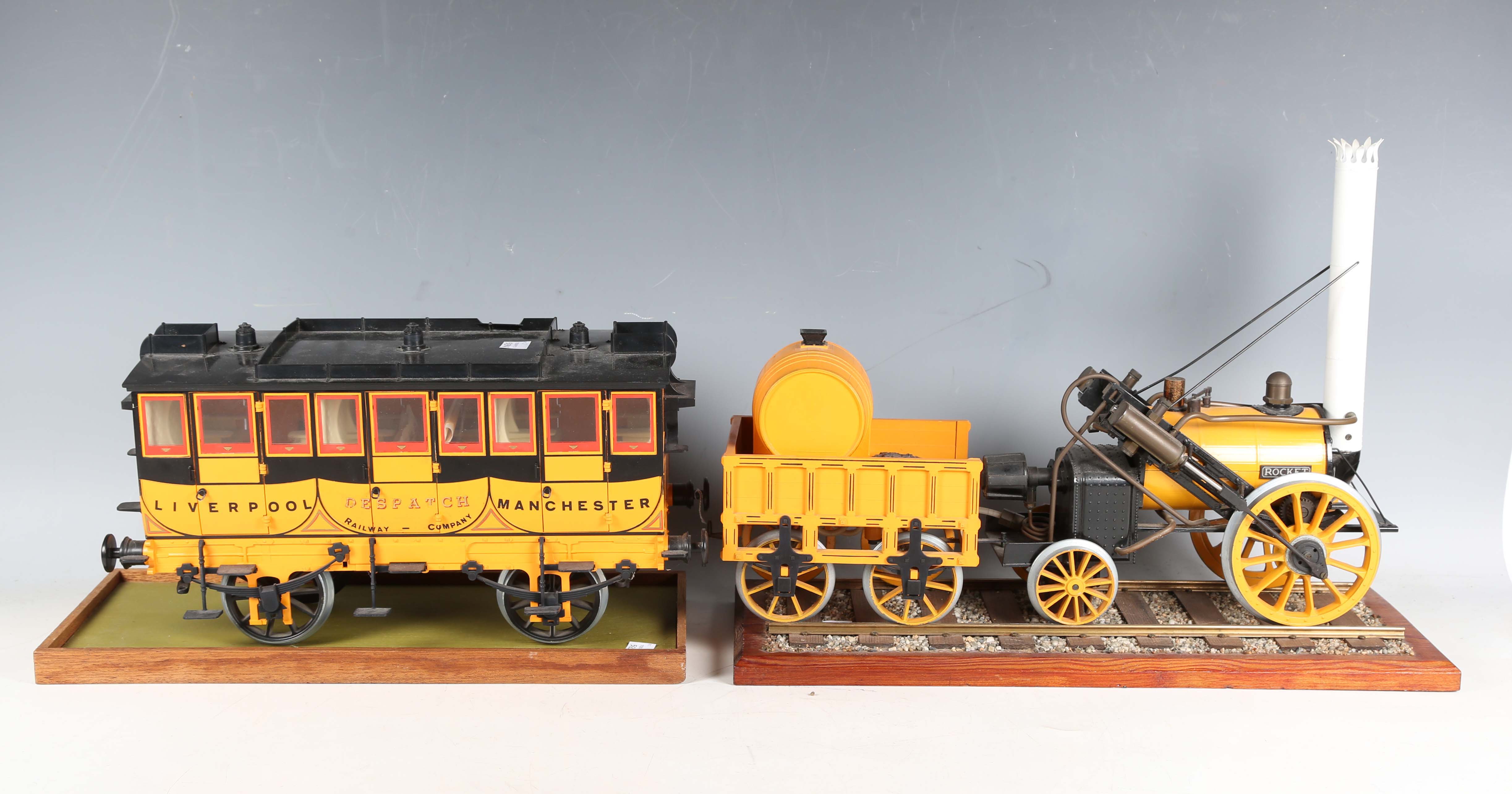 A Hornby Railways 3½ inch gauge live steam Stephenson’s Rocket locomotive, tender and coach (coach damaged).