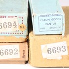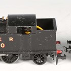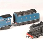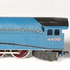 A pre-war Hornby Dublo three-rail locomotive 4498 ‘Sir Nigel Gresley’ and tender in LNER blue, both in returned boxes, together with a pre-war tank locomotive 2690 in LNER black, boxed, dated 9/38, and a Power Ethyl tanker, in an incorrect box (some playwear, tanker damaged).