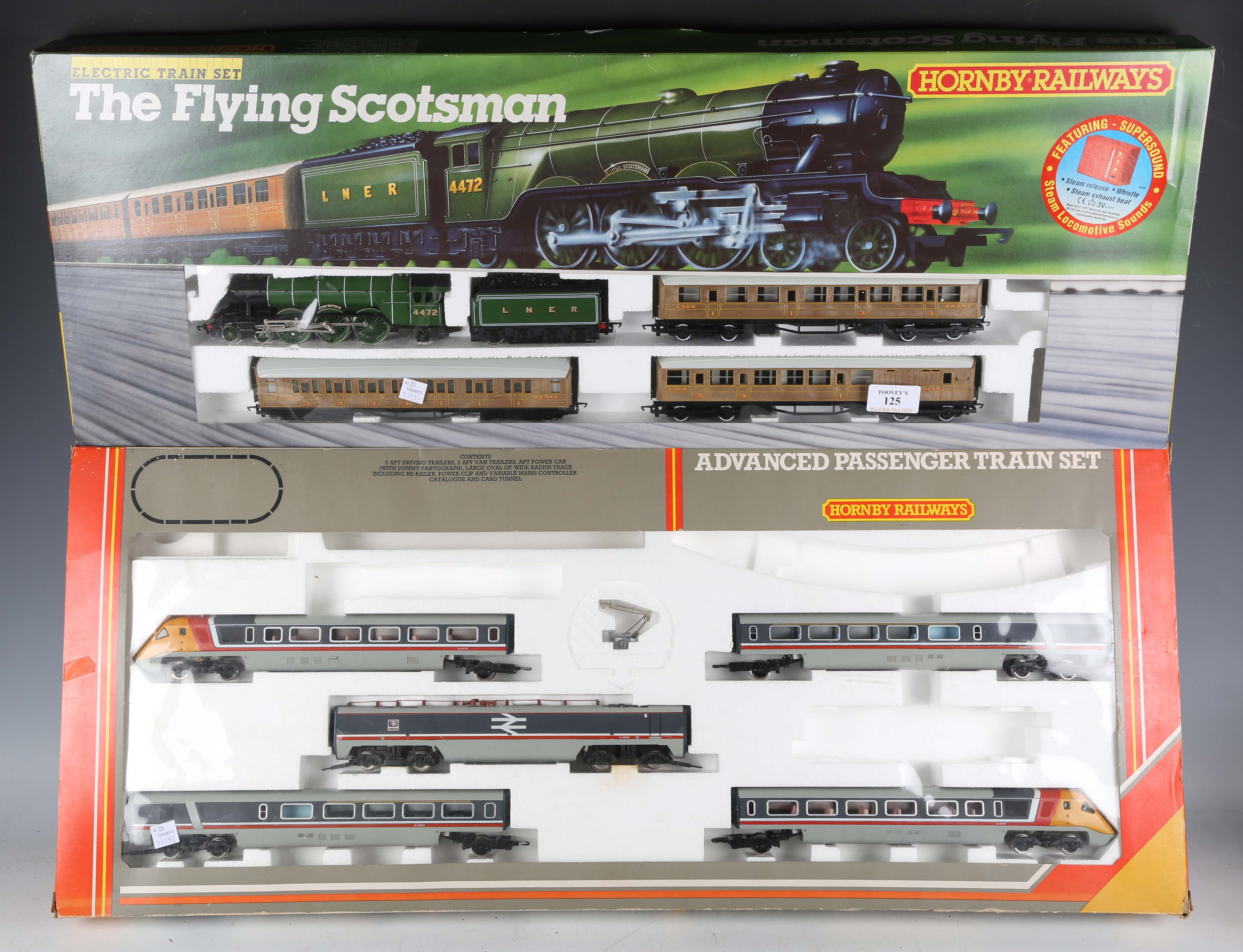 A group of OO gauge railway items, including Hornby limited edition R.795 Lord of the Isles train pack, R.869 The Flying Scotsman set, R.543 Advanced Passenger Train Set, Rivarossi Illinois Central set, Hornby Railways R.082 locomotive 'King James II', Lima diesel locomotive 'Western Gladiator' and DJH model kit ‘Duke of Gloucester’, all boxed (track and other parts missing from sets).