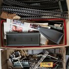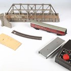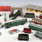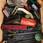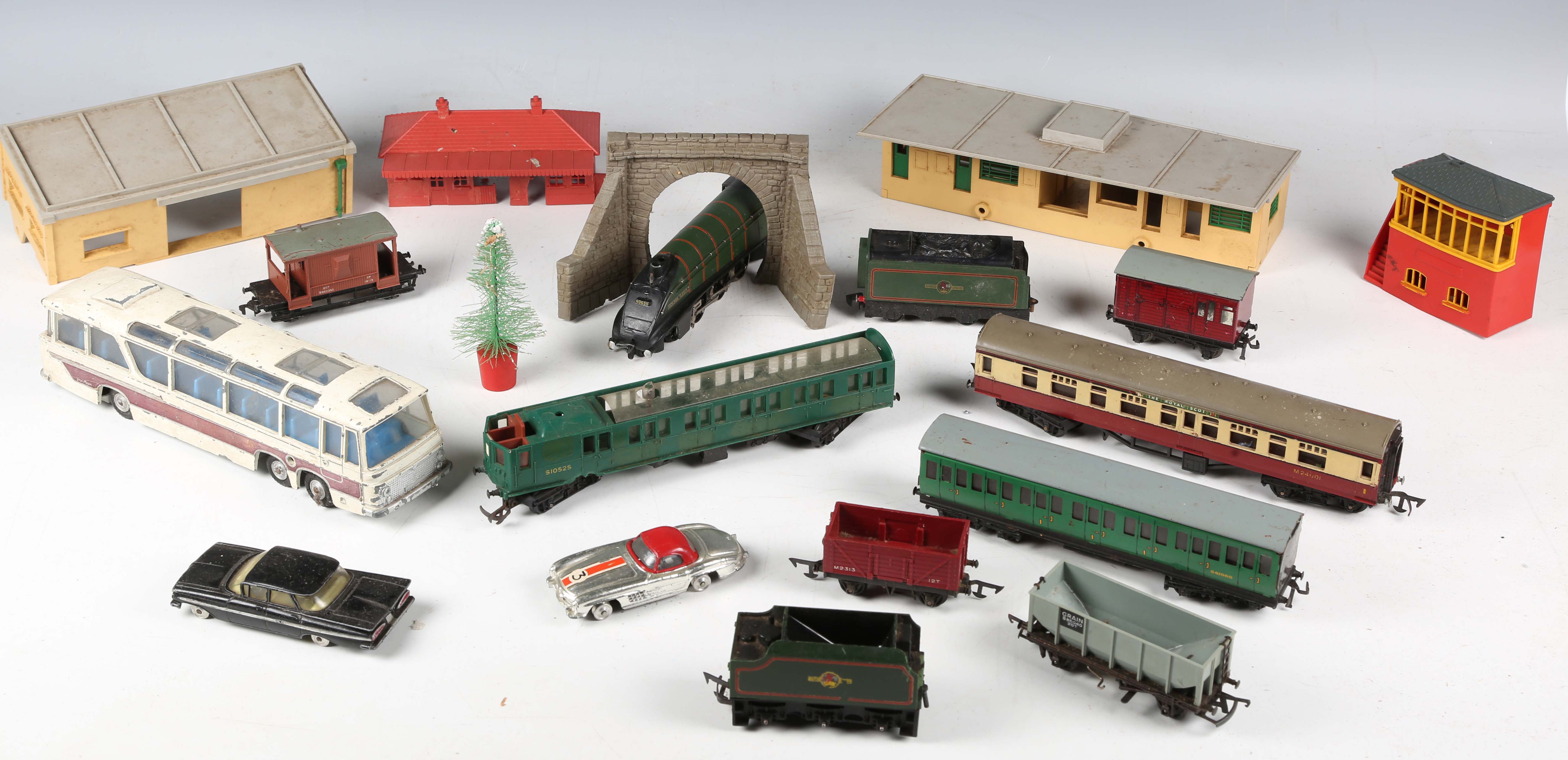 A group of OO gauge model railway items, including Hornby Dublo two rail locomotive 'Golden Fleece' and tender, Tri-ang Railways coaches, goods rolling stock, track and accessories, together with a Dinky Supertoys No. 952 Vega Major luxury coach, a Dublo Dinky Toys No. 076 Lansing Bagnall tractor and trailer and four Corgi Toys boxes (playwear and faults, boxes damaged).