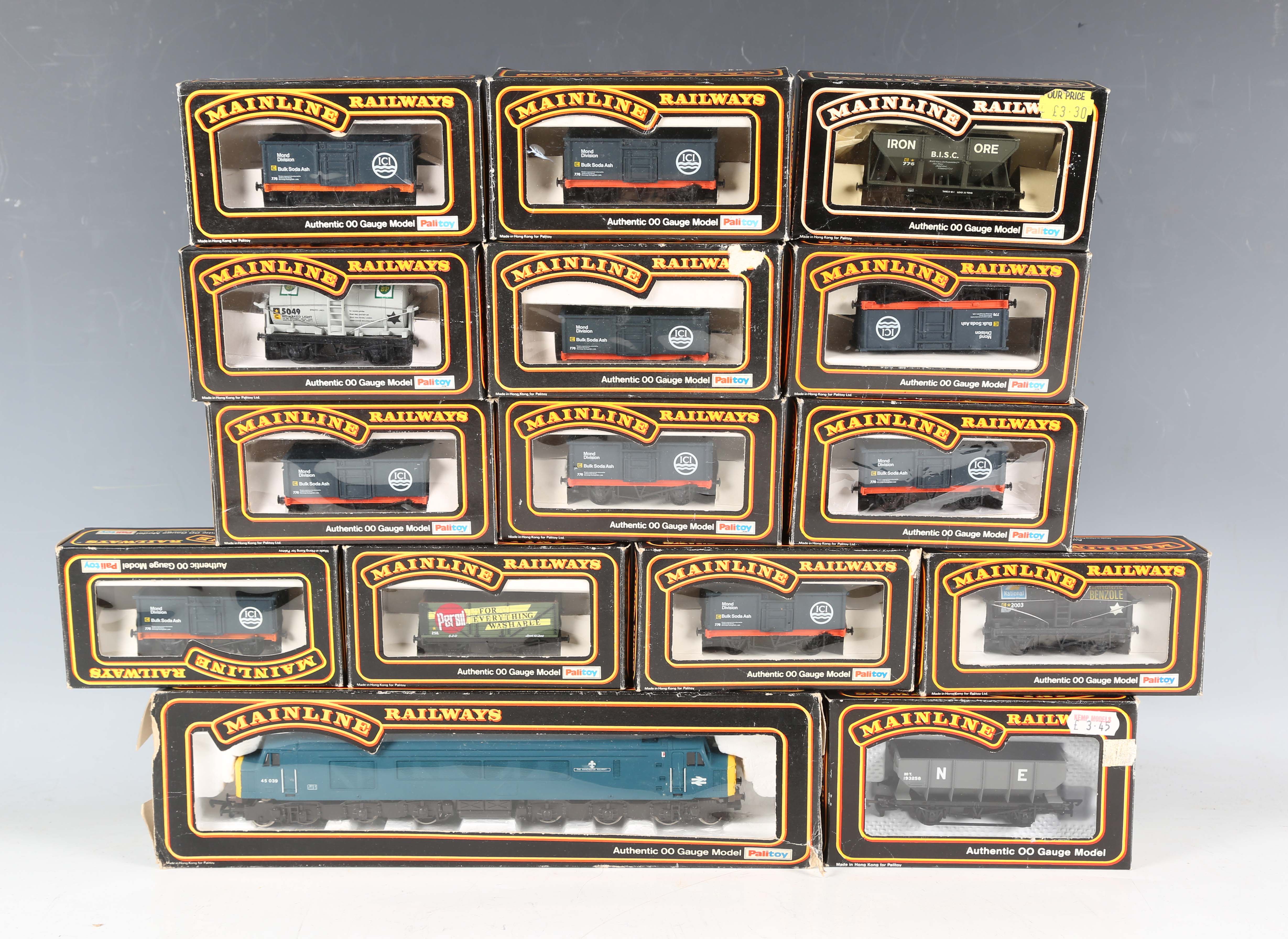 A Mainline Railways OO gauge Class 45 diesel locomotive and fourteen items of goods rolling stock, a set of Grafar goods wagons, all boxed, four others and an Airfix tank locomotive 6110.