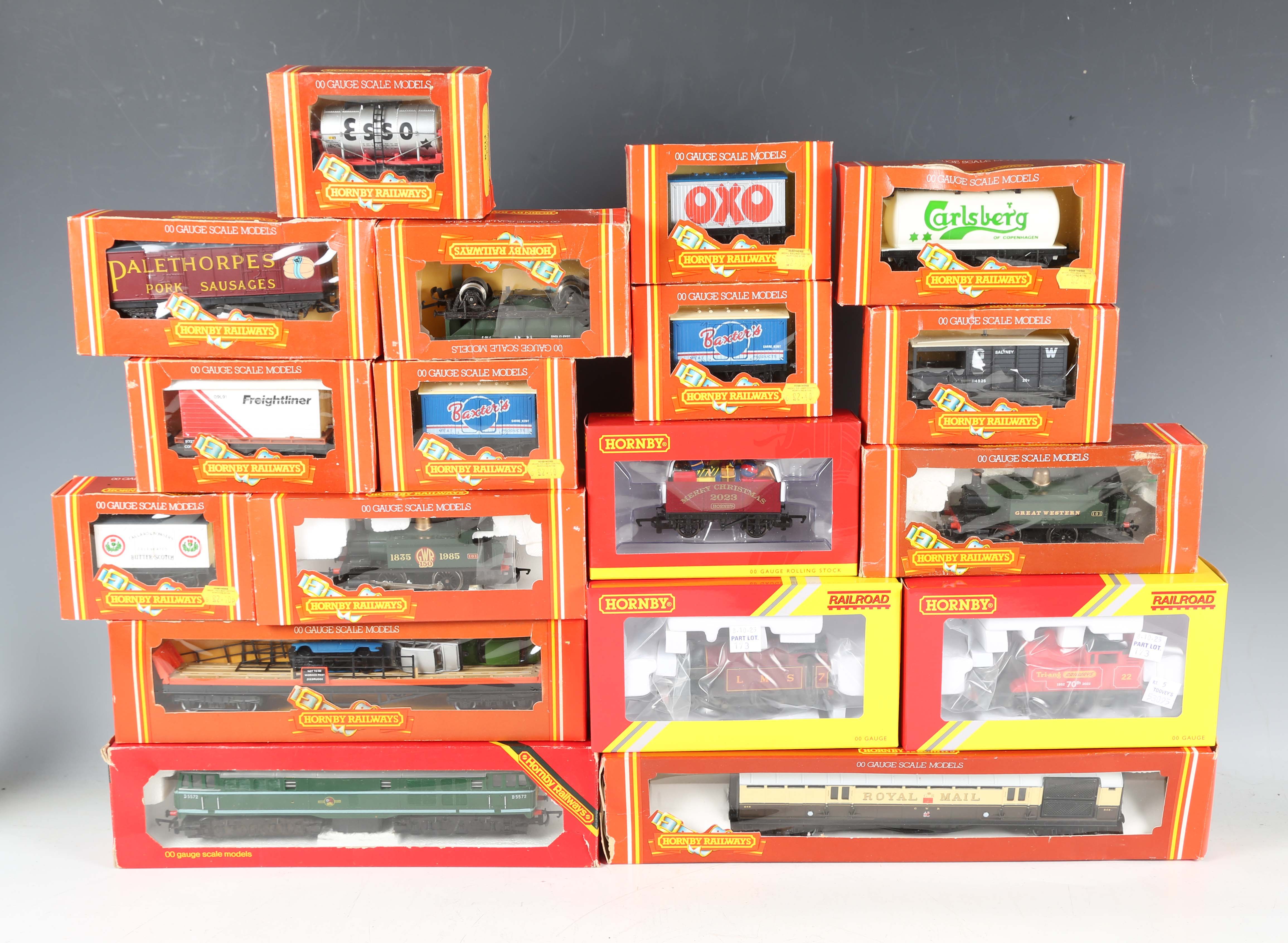 A group of Hornby and Hornby Railways OO gauge items, including R685 High Speed set, R558 Venice Simplon Orient Express set, Deltic locomotive 37-071, locomotive 'Flying Scotsman' and tender, tank locomotive 8751, diesel shunter GWR, two Hornby Collector Club locomotives, goods rolling stock and lineside buildings, together with a small group of Tri-ang Railways items, majority boxed.
