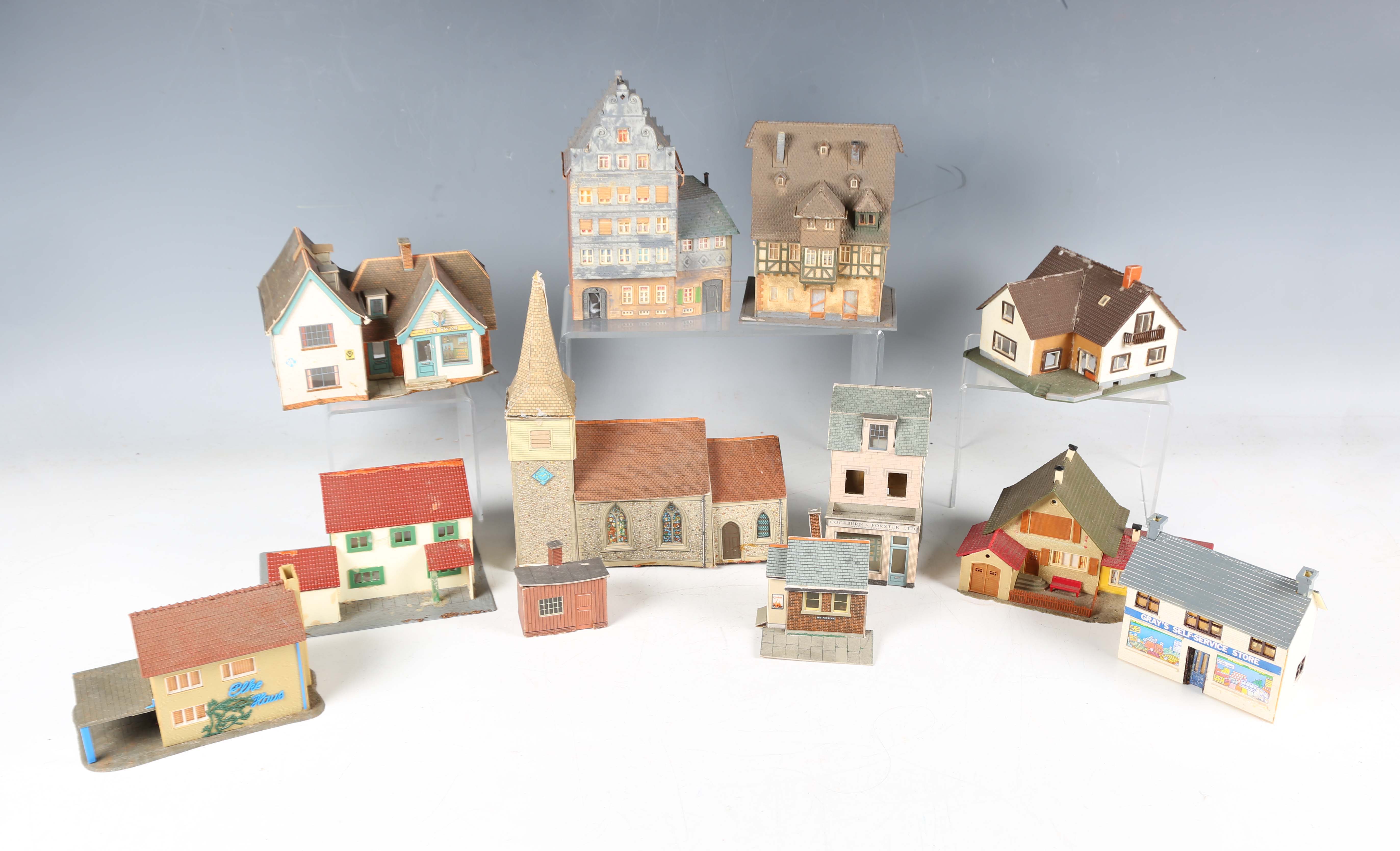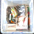 A collection of OO/HO gauge track, lineside buildings, model vehicles and accessories, some boxed (playwear and faults).
