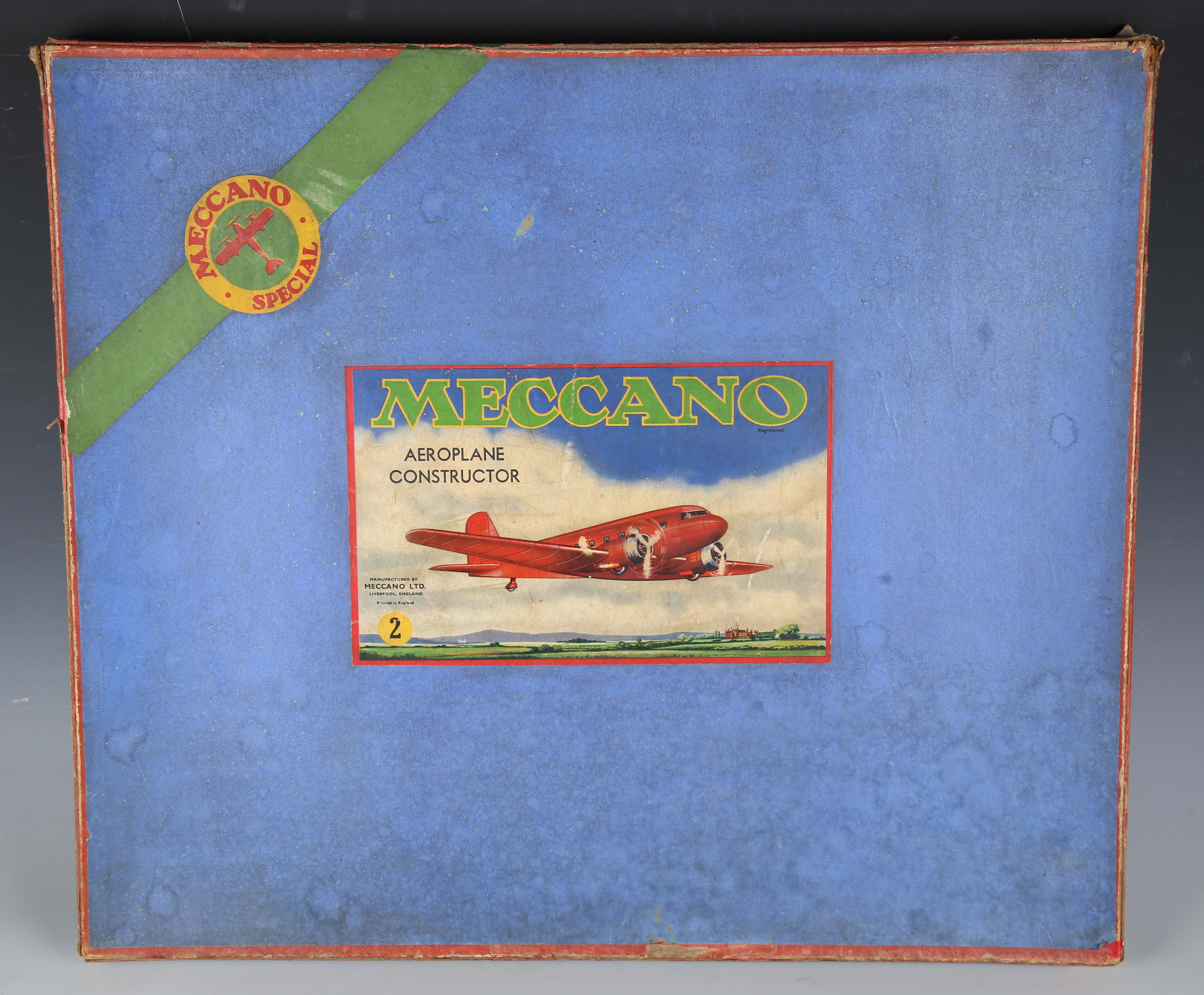 A Meccano Special No. 2 Aeroplane Constructor set in cream and green, boxed (unchecked, some paint wear, box creased, torn, scuffed and stained).