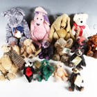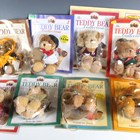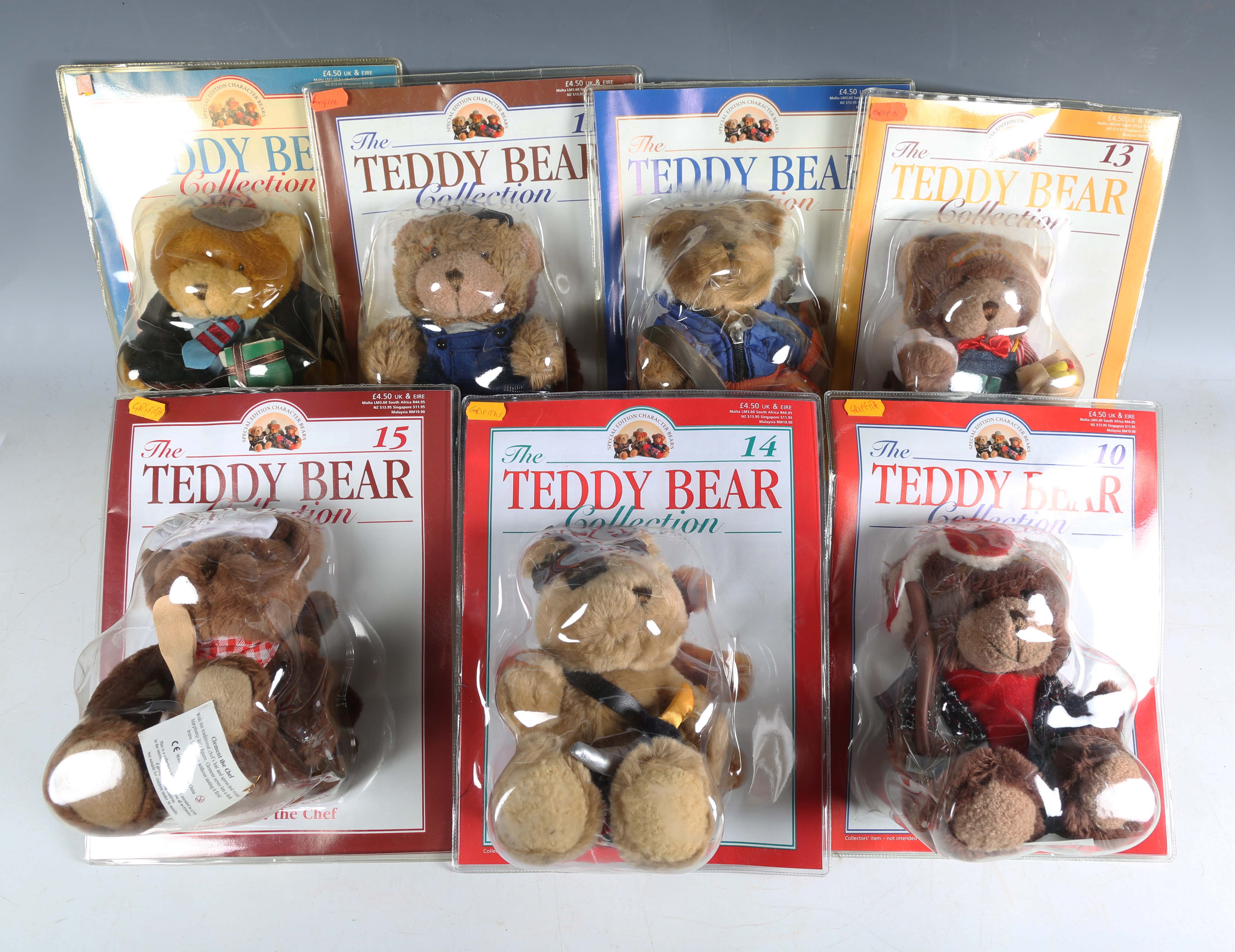 A set of fifteen The Teddy Bear Collection teddy bears, including Henry the Hiker, Peter the Pilot and Donald the Doctor, all within blister packs (damaged), together with a collection of The Wonderful World of Teddy Bears, a Gund teddy bear 'Blue', artist teddy bears and others.