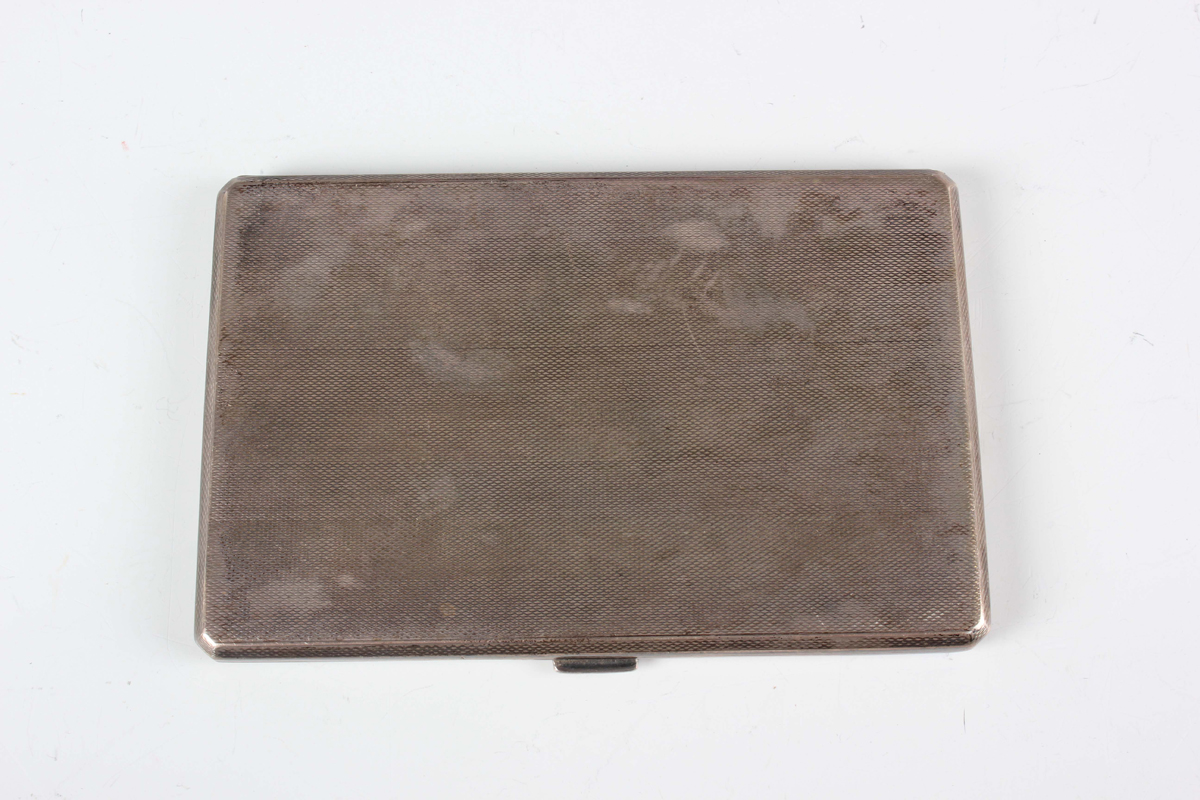 A George V silver rectangular cigarette case with engine turned decoration, Birmingham 1928 by Adie Brothers Ltd, weight 198.2g, length 12.7cm.