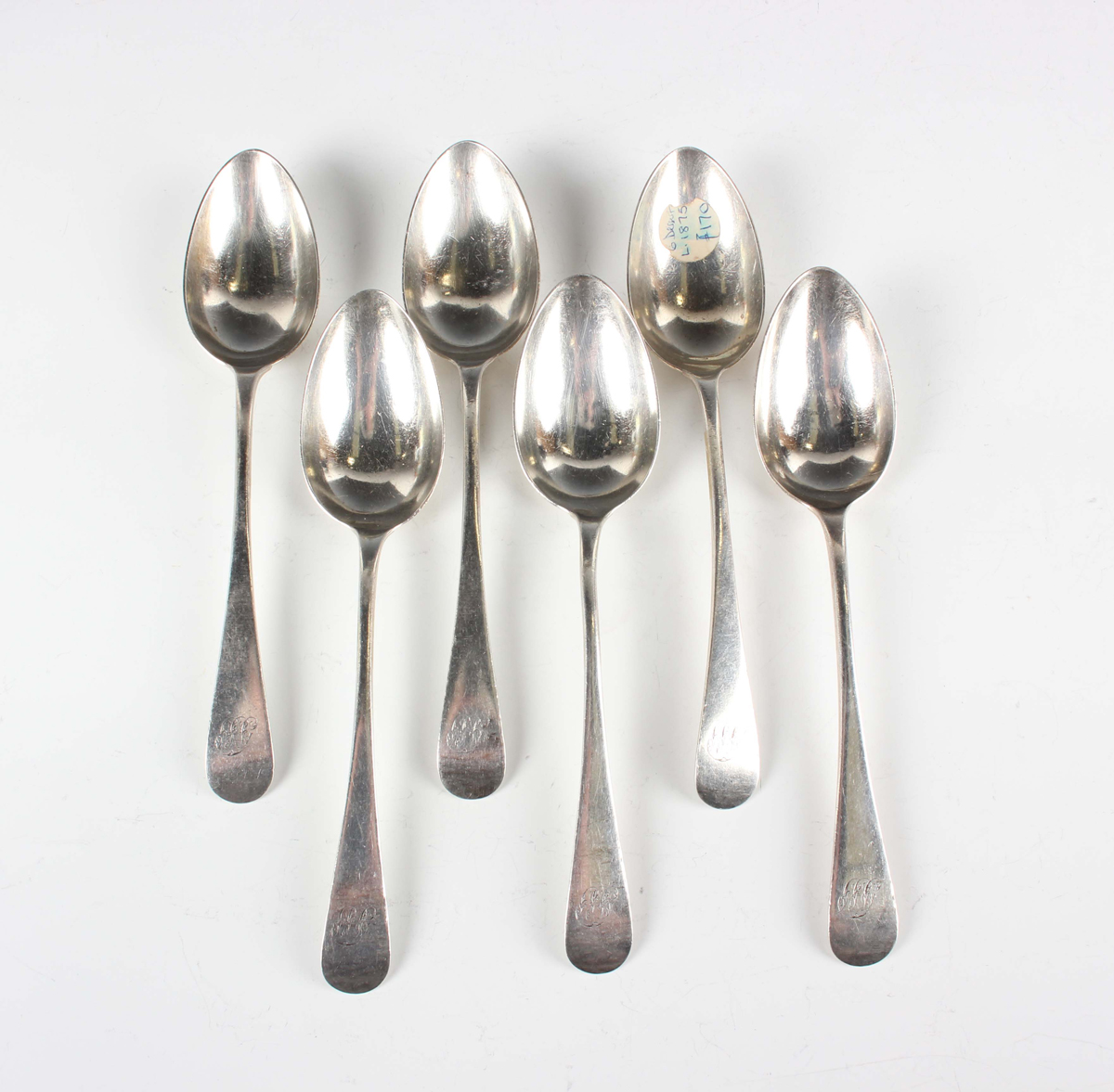 A set of six Victorian silver Old English pattern dessert spoons, London 1875 by Martin Hall & Co, total weight 325g, length 18.5cm.