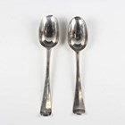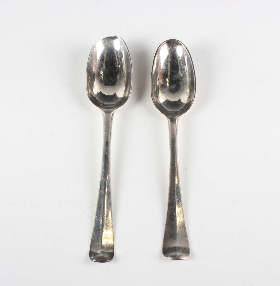 A George II Irish silver Hanoverian Rat Tail tablespoon, Dublin 1736, no maker's mark, length 21cm, and an Irish silver Hanoverian Rat Tail tablespoon, Dublin 1747 by William Walsh, length 20.2cm, total weight 147.1g.
