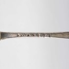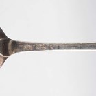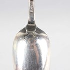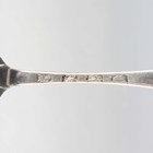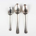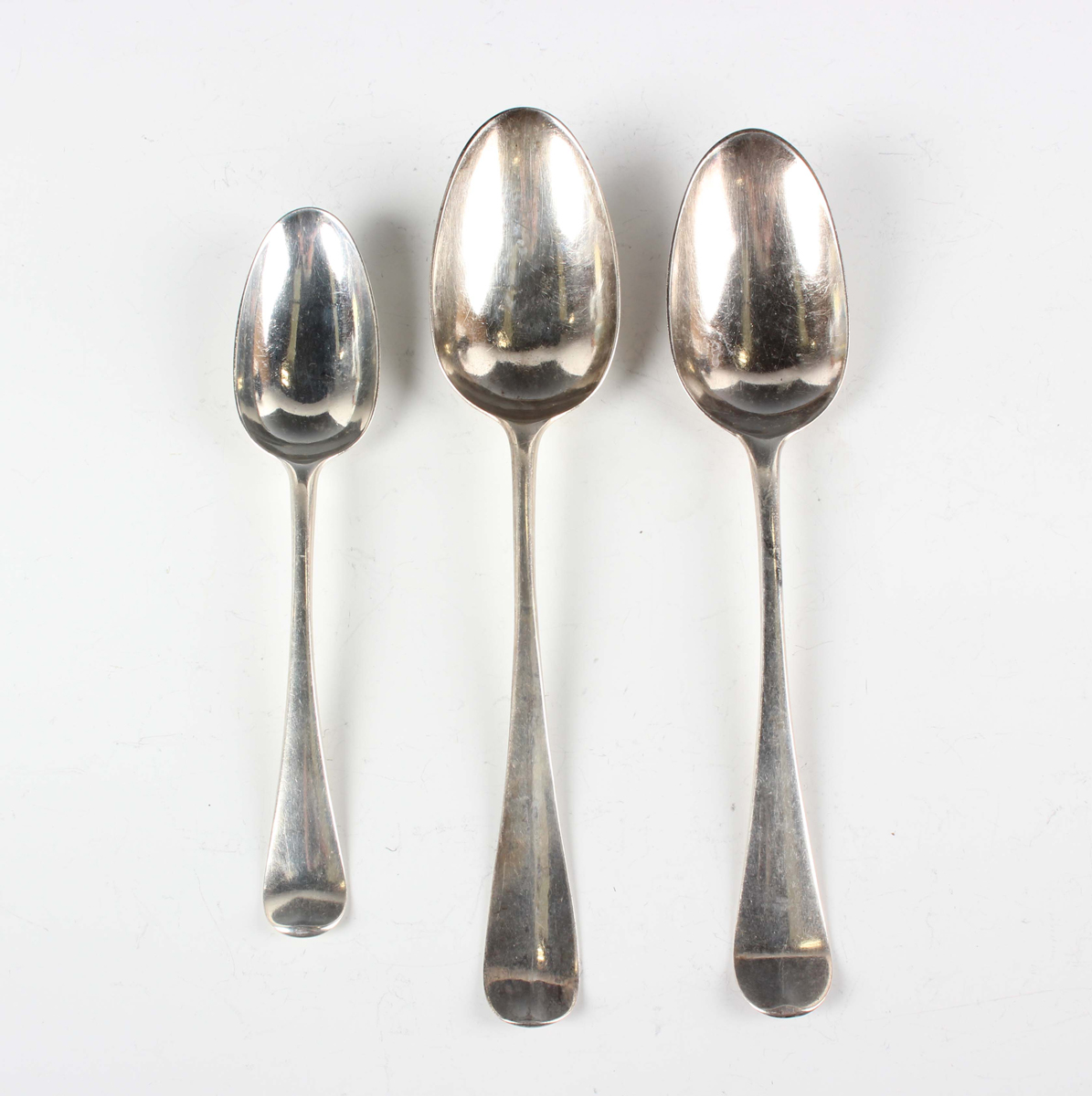 A George II silver Hanoverian shell back dessert spoon, London 1739 by Ebenezer Coker, length 16.7cm, a silver Hanoverian Rat Tail tablespoon, London, no date letter, by Ebenezer Coker, length 20.2cm, and a silver Hanoverian Rat Tail tablespoon, London 1766 by Thomas Wallis I, length 20.9cm, total weight 138.7g.
