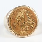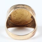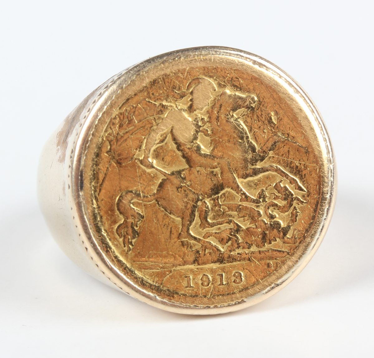 A 9ct gold ring, mounted with a George V half-sovereign 1913, London 1966, ring size approx R1/2, weight 11.2g.