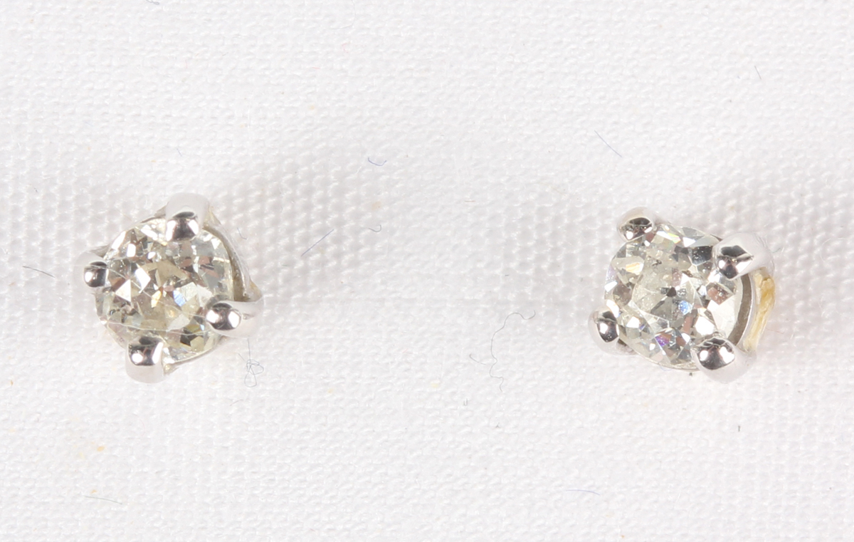 A pair of gold and diamond single stone earstuds, each claw set with a circular cut diamond, with post fittings, unmarked, and a pair of gold butterflies, each detailed '375', total weight 1g.