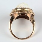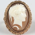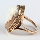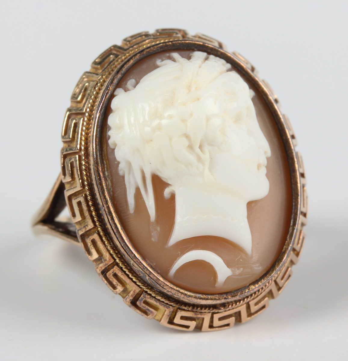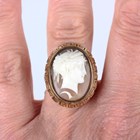 A gold mounted oval shell cameo ring, carved as a classical portrait bust of a lady, unmarked, weight 7.5g, ring size approx L1/2.