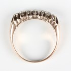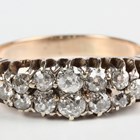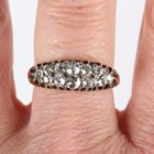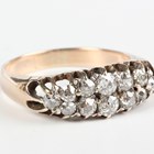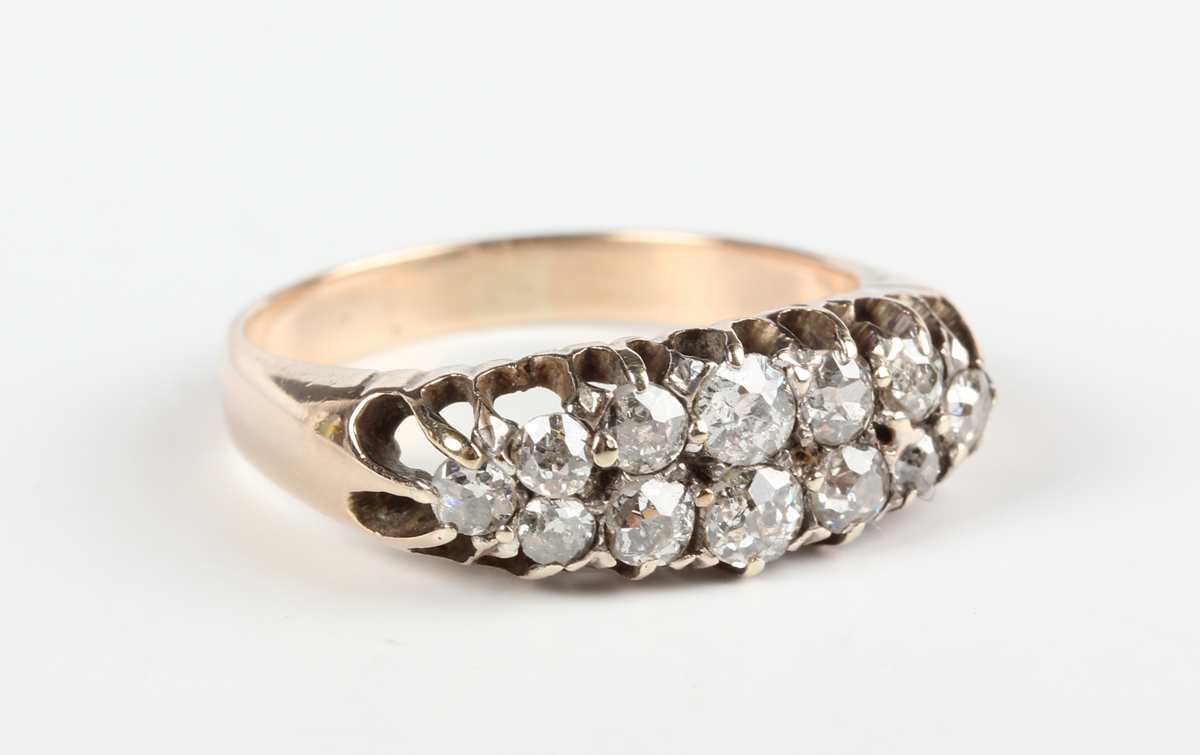 A gold ring, mounted with twelve old cut cushion shaped diamonds in boat shaped setting, unmarked, weight 3.7g, ring size approx P.