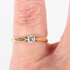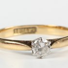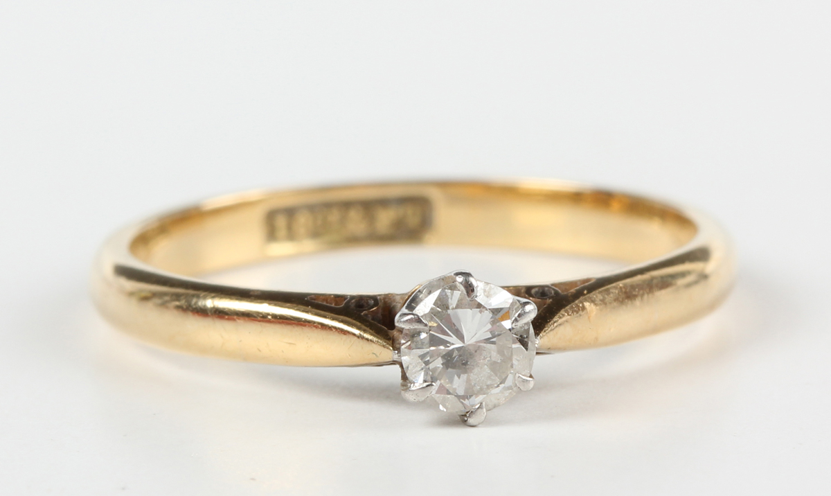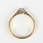 An 18ct gold, platinum and diamond single stone ring, claw set with a circular cut diamond, weight 2.1g, ring size approx L, with a case.