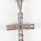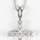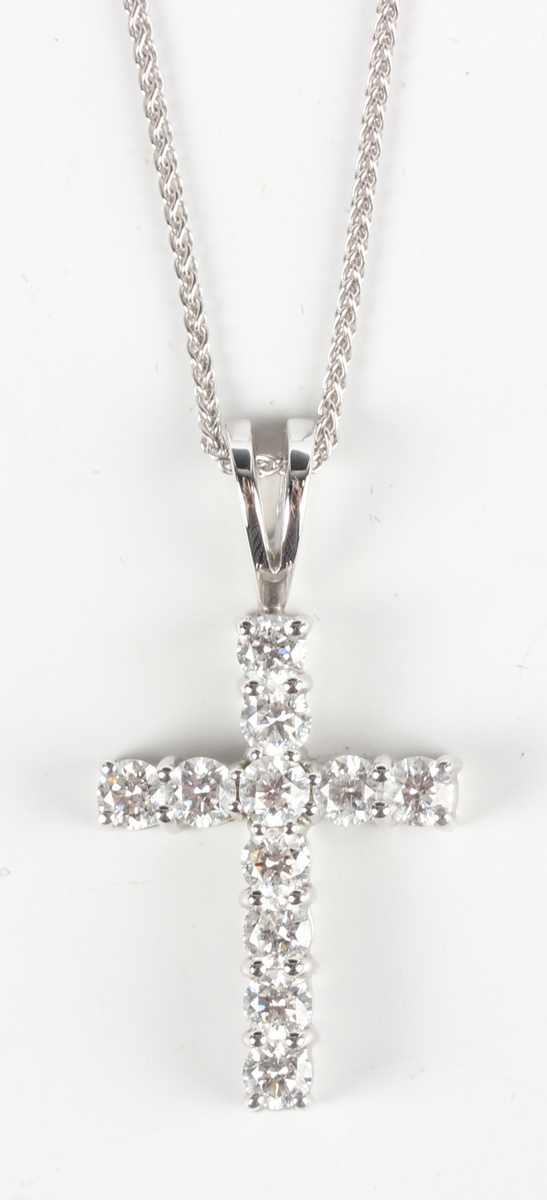 An 18ct white gold and diamond pendant cross, mounted with circular cut diamonds, length 2.8cm, with an 18ct white gold neckchain on a sprung hook shaped clasp, length 40.5cm, total weight 5.2g.