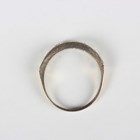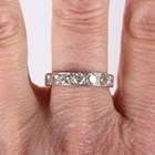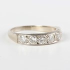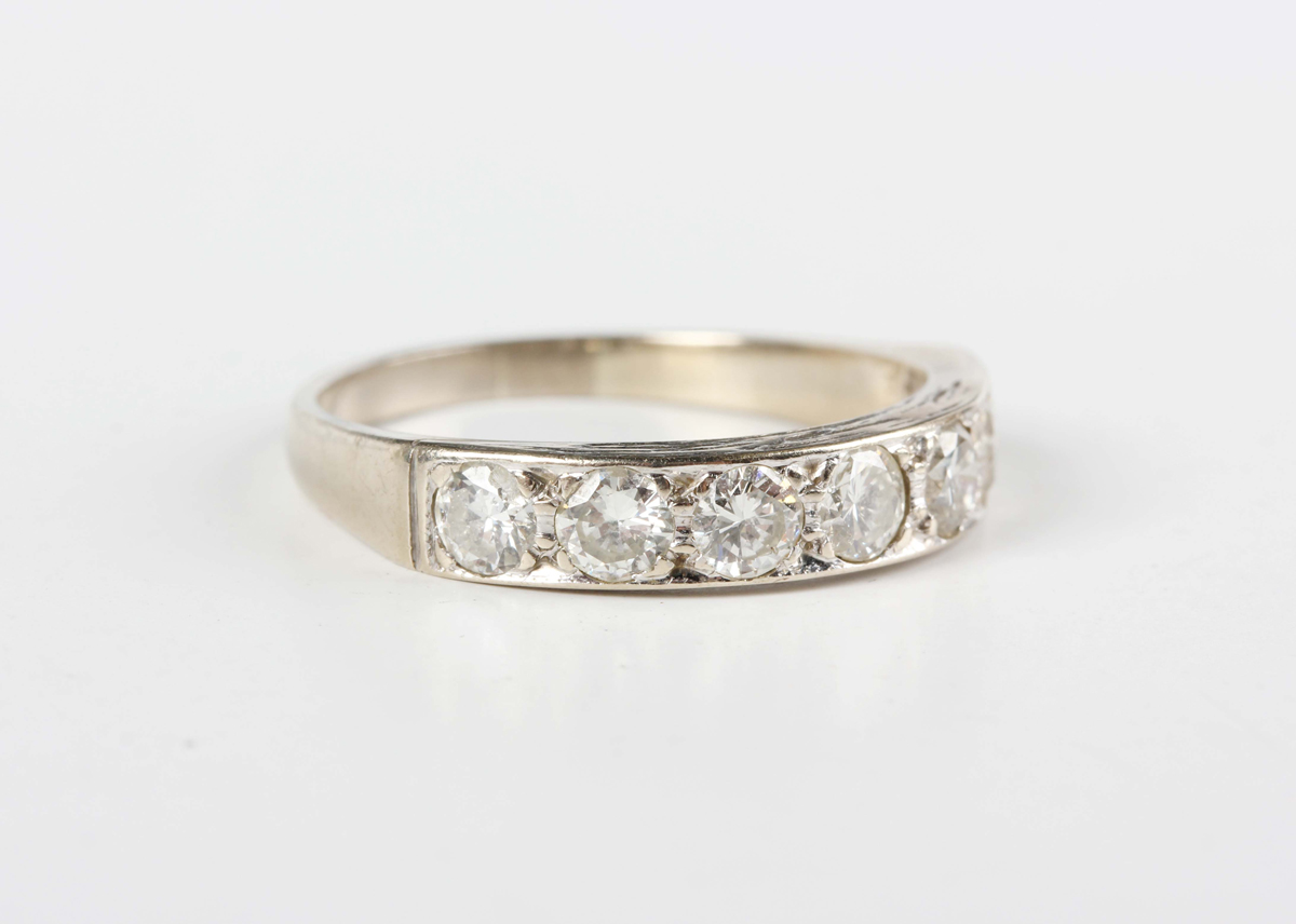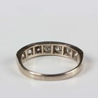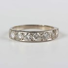 A white gold and diamond half hoop ring, mounted with a row of seven circular cut diamonds, detailed ‘18’, weight 3.7g, ring size approx Q1/2.