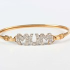 A 9ct gold and colourless gem set 'Mum' bangle, weight 6.7g, inside width 6.2cm.