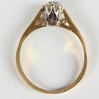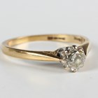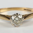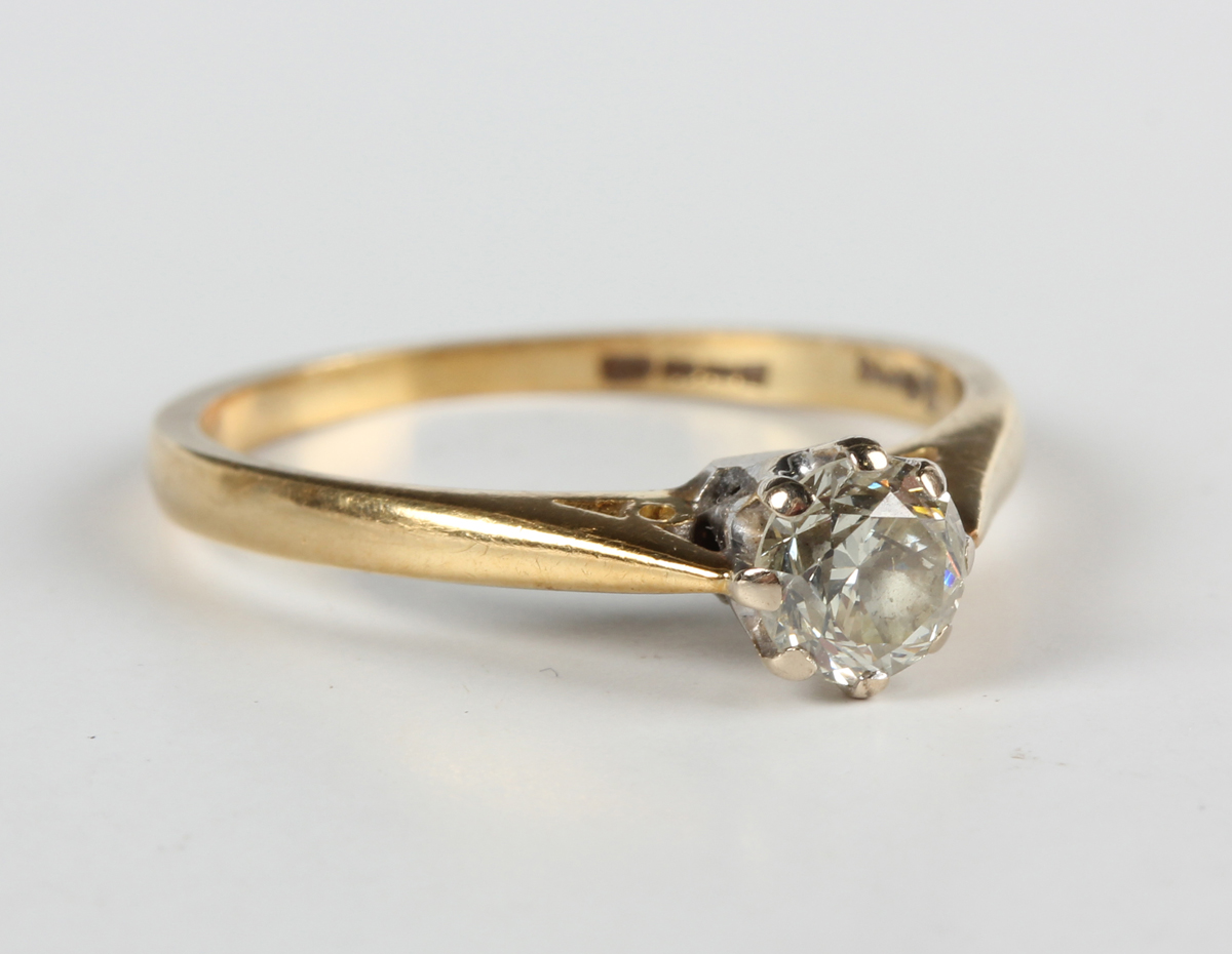 A gold and diamond single stone ring, claw set with a circular cut diamond, detailed ‘50pts’, weight 2.6g, ring size approx M1/2.