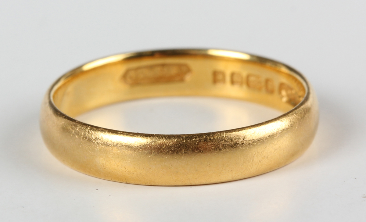 A 22ct gold plain wedding ring, weight 3.7g, ring size approx N1/2.