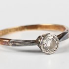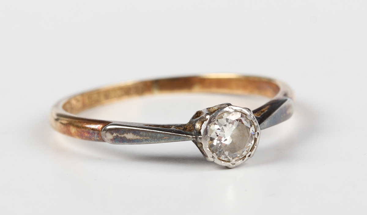 A gold, platinum and diamond single stone ring, mounted with a cushion shaped diamond, detailed '18ct&Pt', weight 1.9g, ring size approx O1/2.