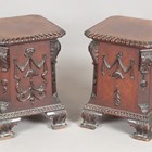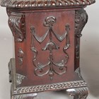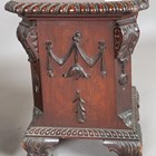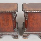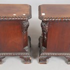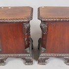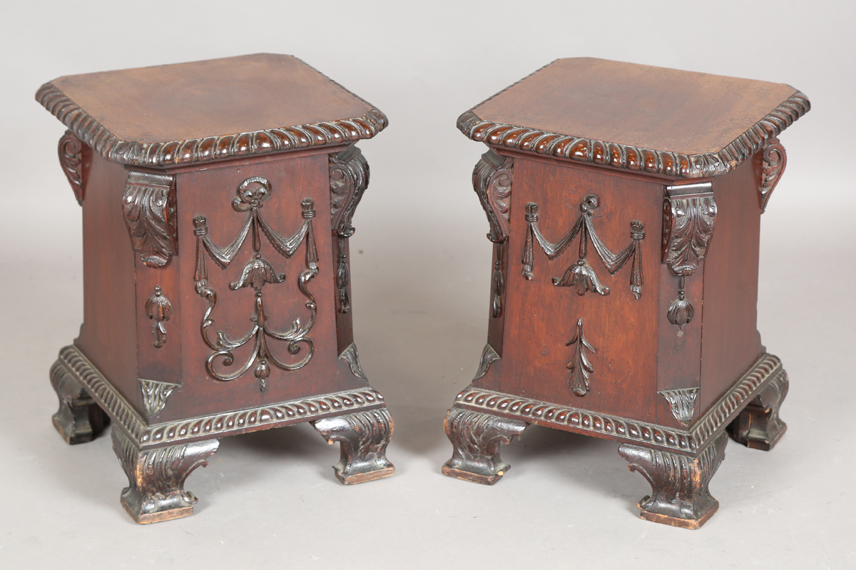 A pair of Edwardian Neoclassical Revival mahogany plant stand pedestals with gadrooned tops and carved scroll feet, height 46cm.