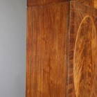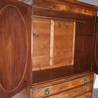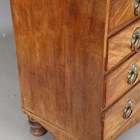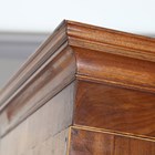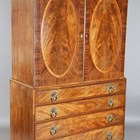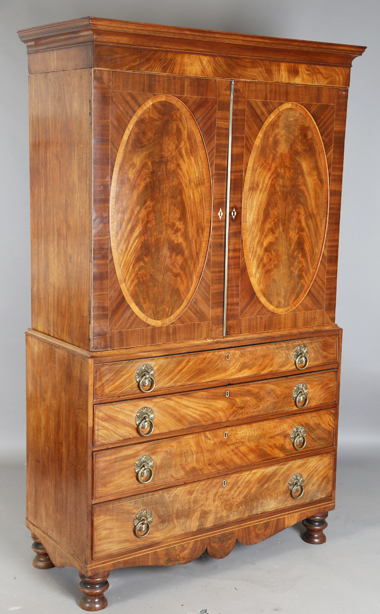 An early 19th century mahogany linen press, the two doors with oval recessed panels above four long drawers, height 210cm, width 124cm, depth 55cm.