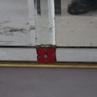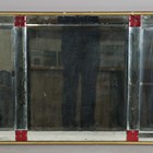 An early 20th century rectangular wall mirror, the gilt painted frame inset with sectional bevelled plates and red tinted glass rosettes, 60.5cm x 105cm.