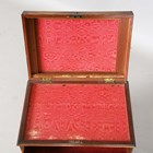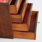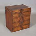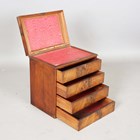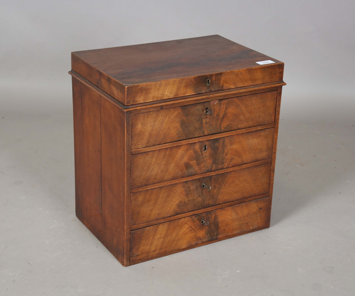 A Regency flame mahogany table-top chest, the hinged lid above four drawers, height 40cm, width 39.5cm, depth 28cm.