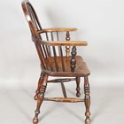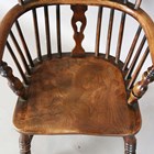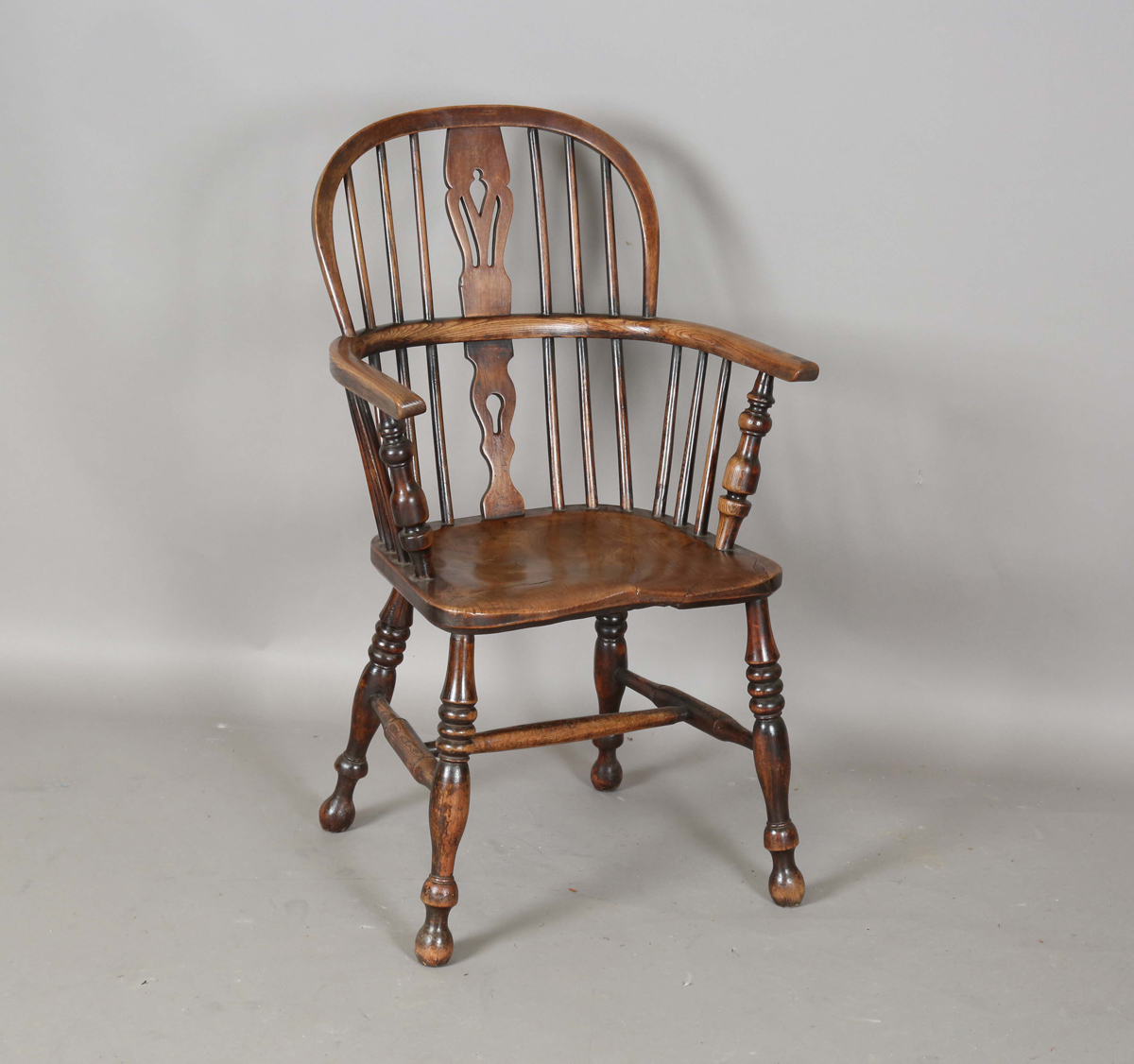 A 19th century ash and elm pierced splat back Windsor armchair, raised on ring turned legs, height 95cm, width 55cm, depth 52cm.
