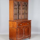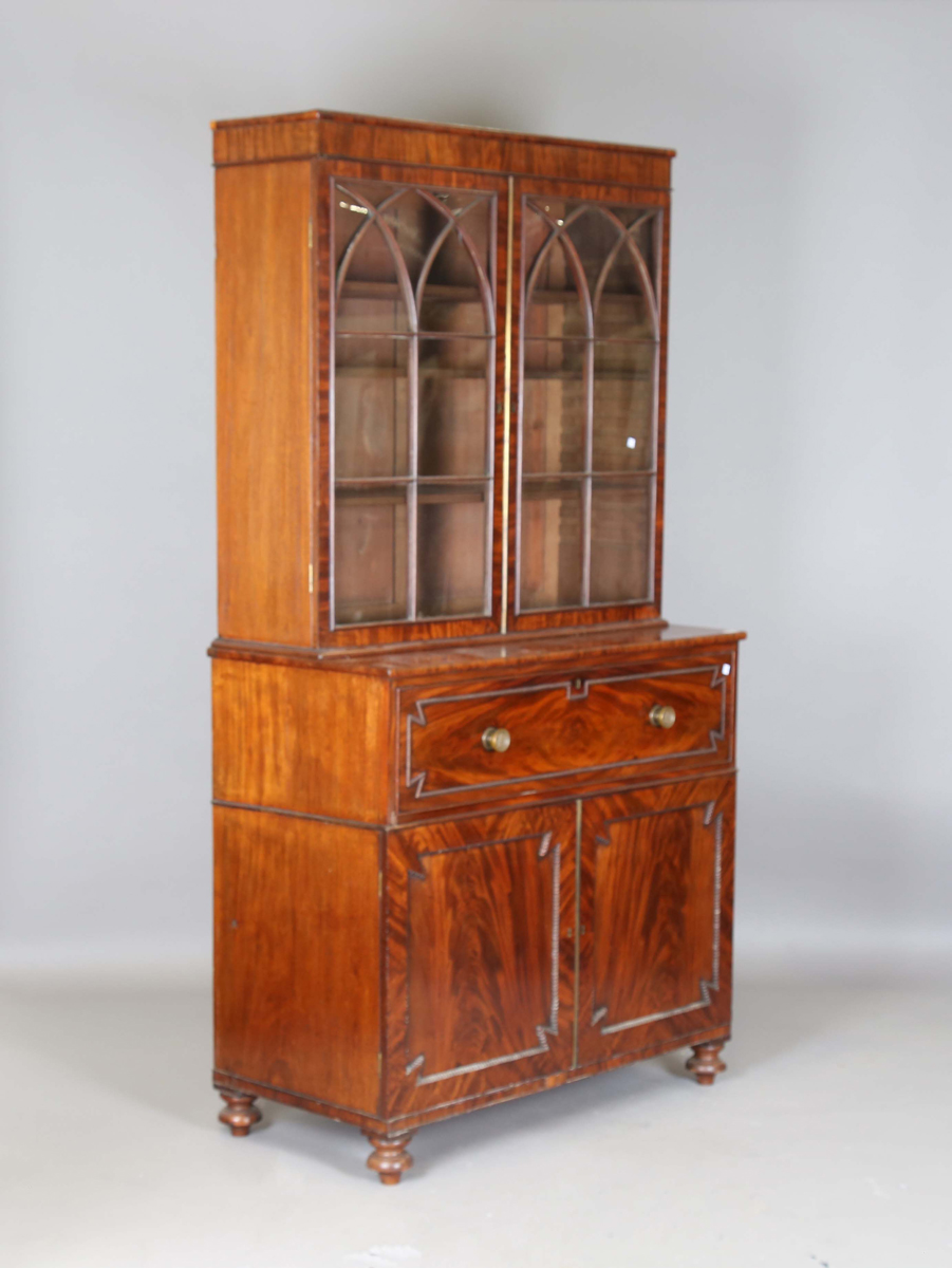 A William IV mahogany secrétaire bookcase cabinet, the lancet glazed top above a drawer and two doors, all with beaded edging, height 216cm, width 115cm, depth 56cm.