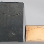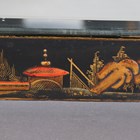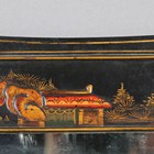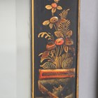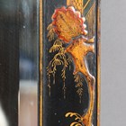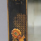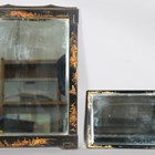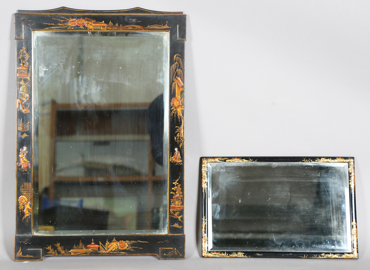 An early 20th century chinoiserie framed wall mirror, decorated with figures and plants on a black ground, 74cm x 50cm, together with another chinoiserie wall mirror, 46cm x 30cm.