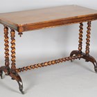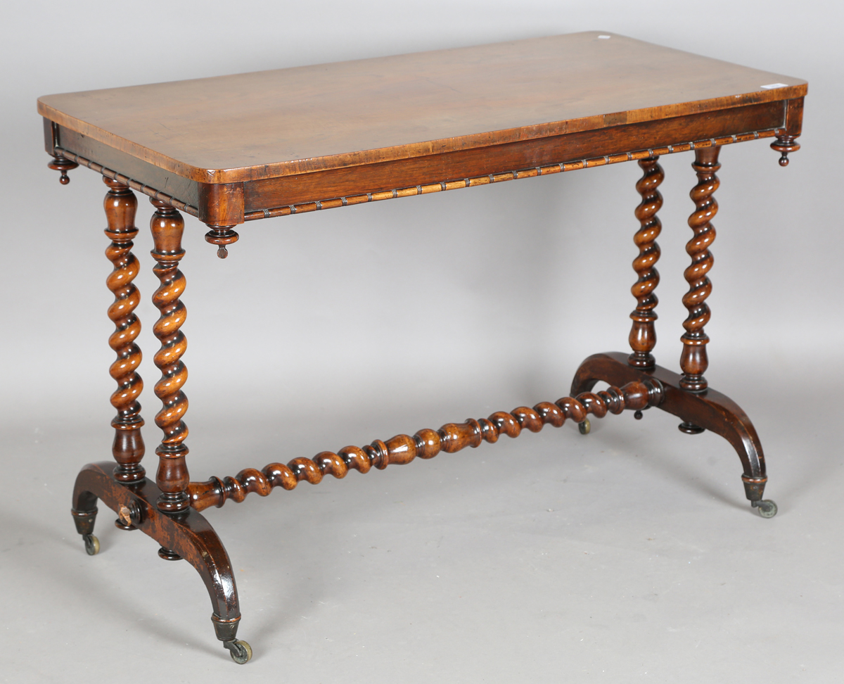 A mid-Victorian walnut rectangular centre table with barley twist legs and bracket feet, height 71cm, width 107cm, depth 53cm.