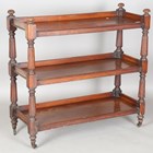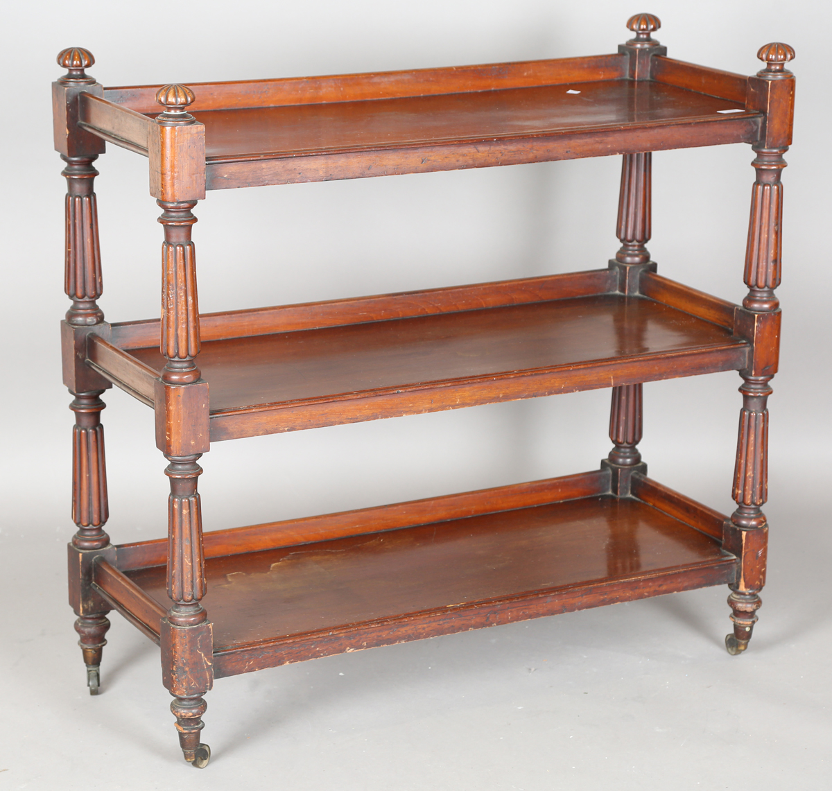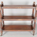 A mid-Victorian mahogany three-tier buffet with reeded supports, height 101cm, width 106cm, depth 42cm.