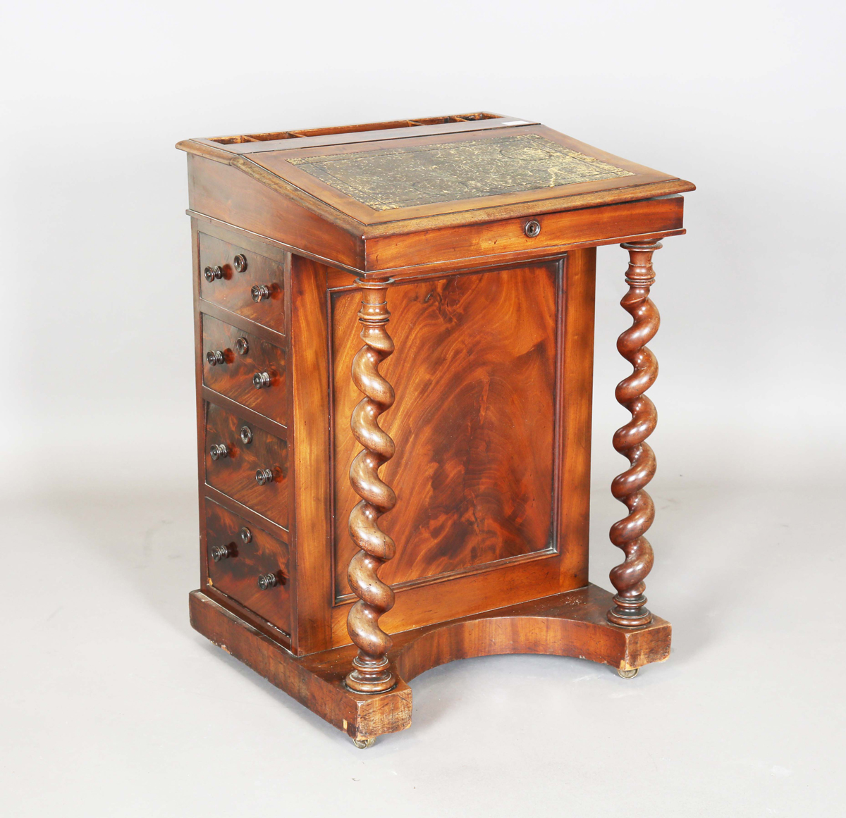 A mid-Victorian mahogany Davenport, the hinged writing slope above four side drawers, height 81cm, width 56cm, depth 54cm.