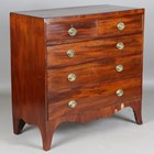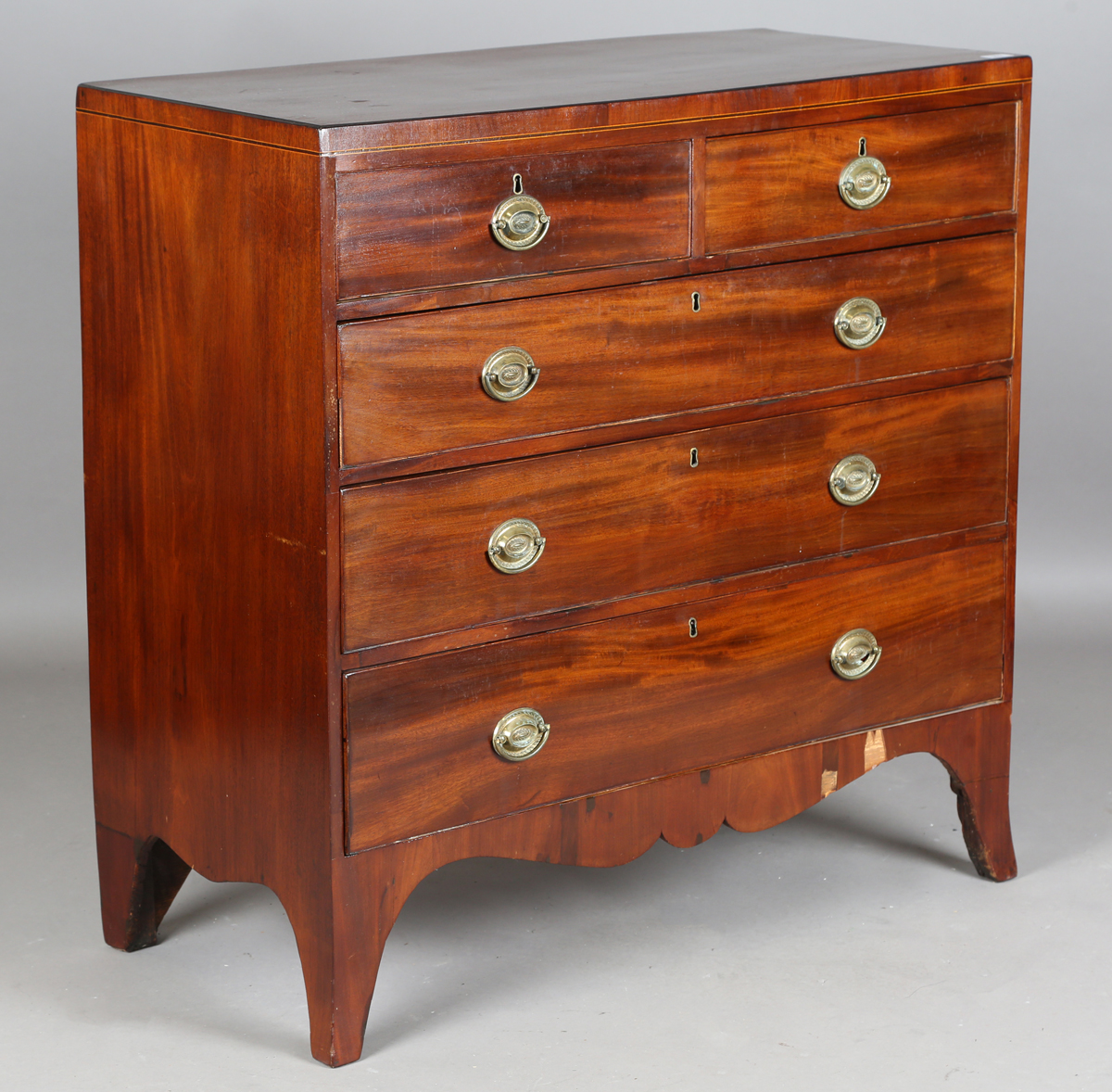 A George III mahogany chest of drawers, on splayed bracket feet, height 106cm, width 107cm, depth 50cm (faults).