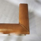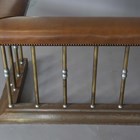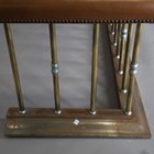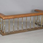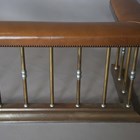 A 20th century brass and nickel plated club fender with a brown leather padded seat, height 53cm, width 164cm, depth 59cm, internal width 127cm.