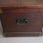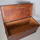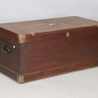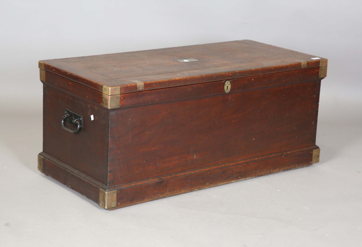 An early/mid-19th century mahogany and brass bound campaign trunk, possibly for naval use, height 48cm, width 110cm, depth 51cm.